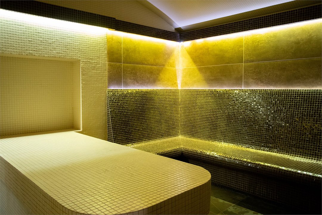 Инфраструктура: зона отдыхаДля тех, кто предпочитает мягкое прогревание, предусмотрен хаммам с влажностью 65–70 % и температурой около 35 °C — идеальная среда для пенного массажа и других спа‑процедур.