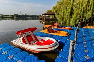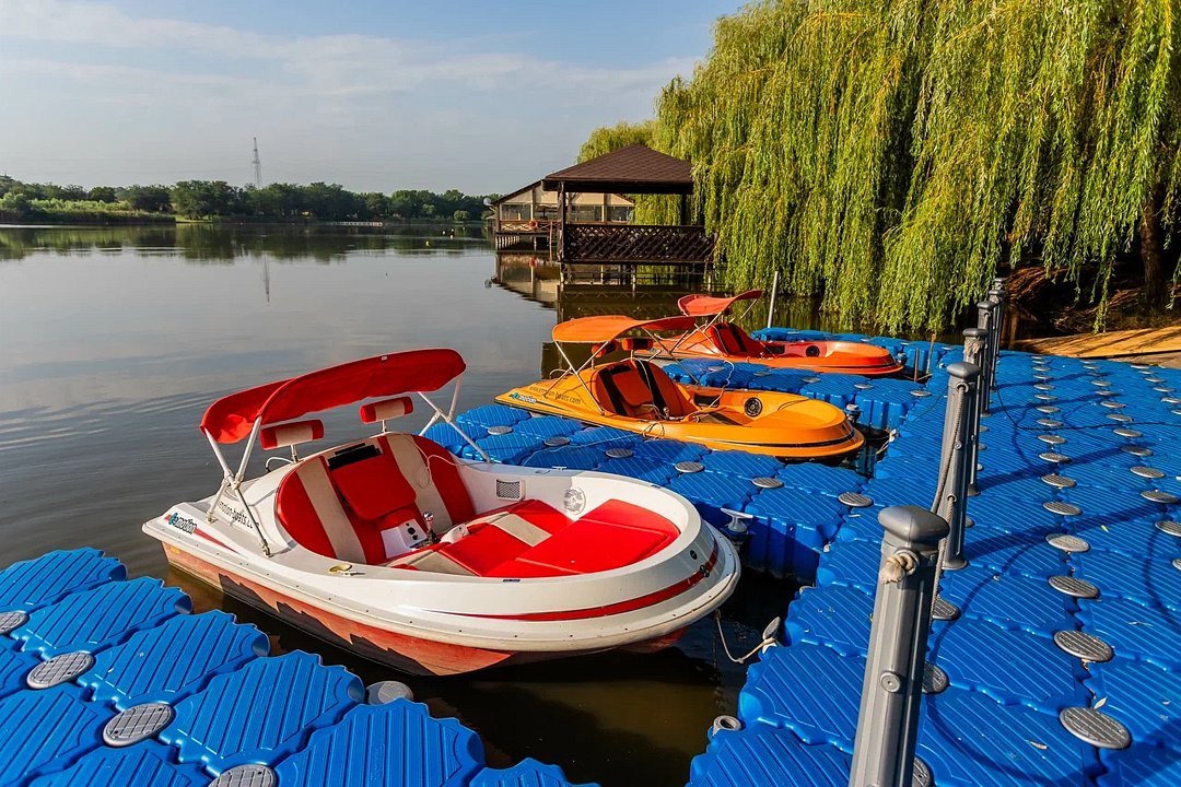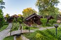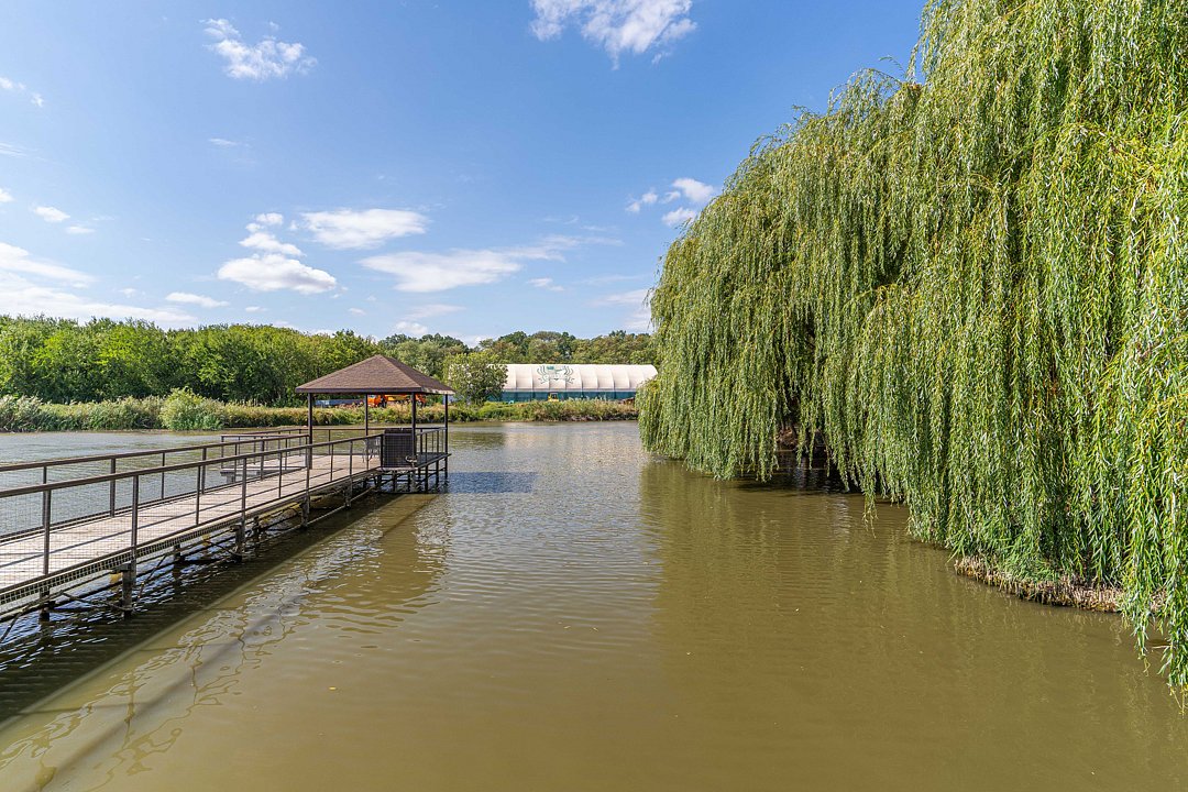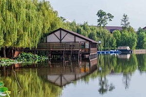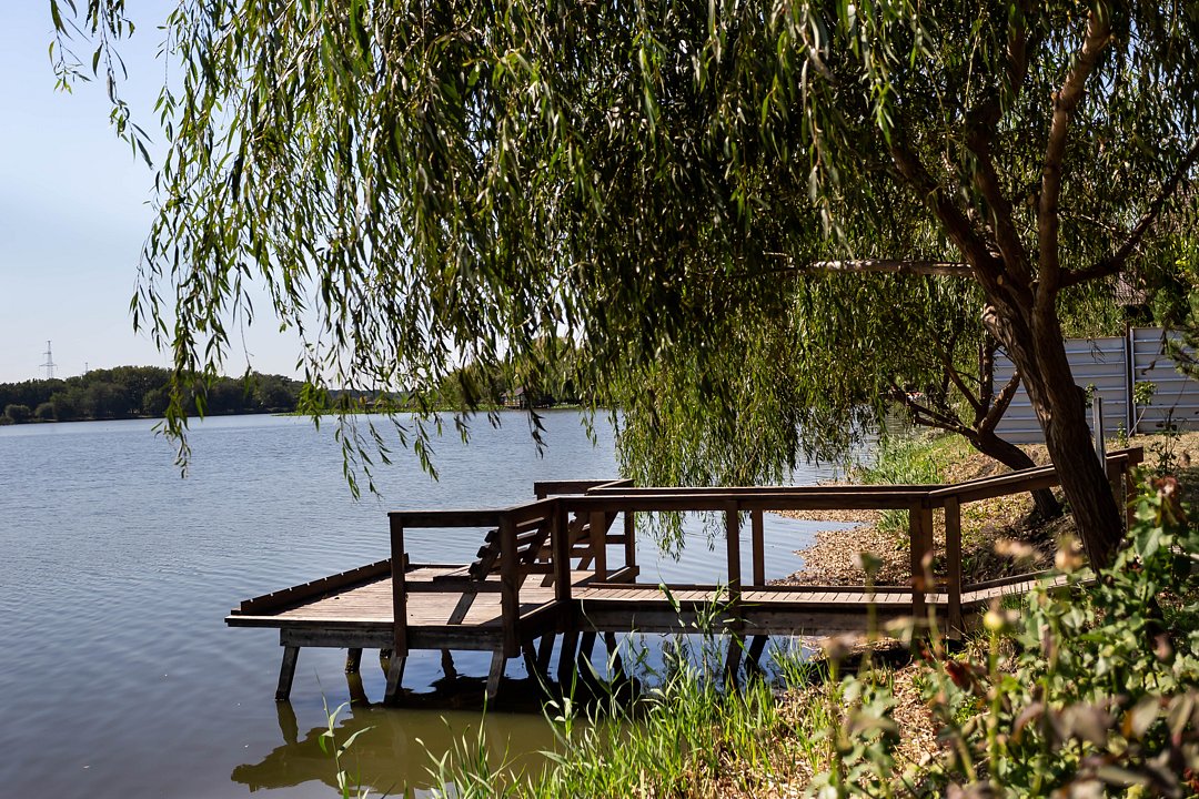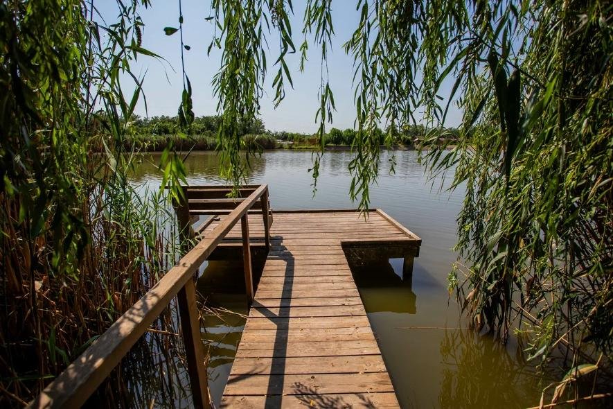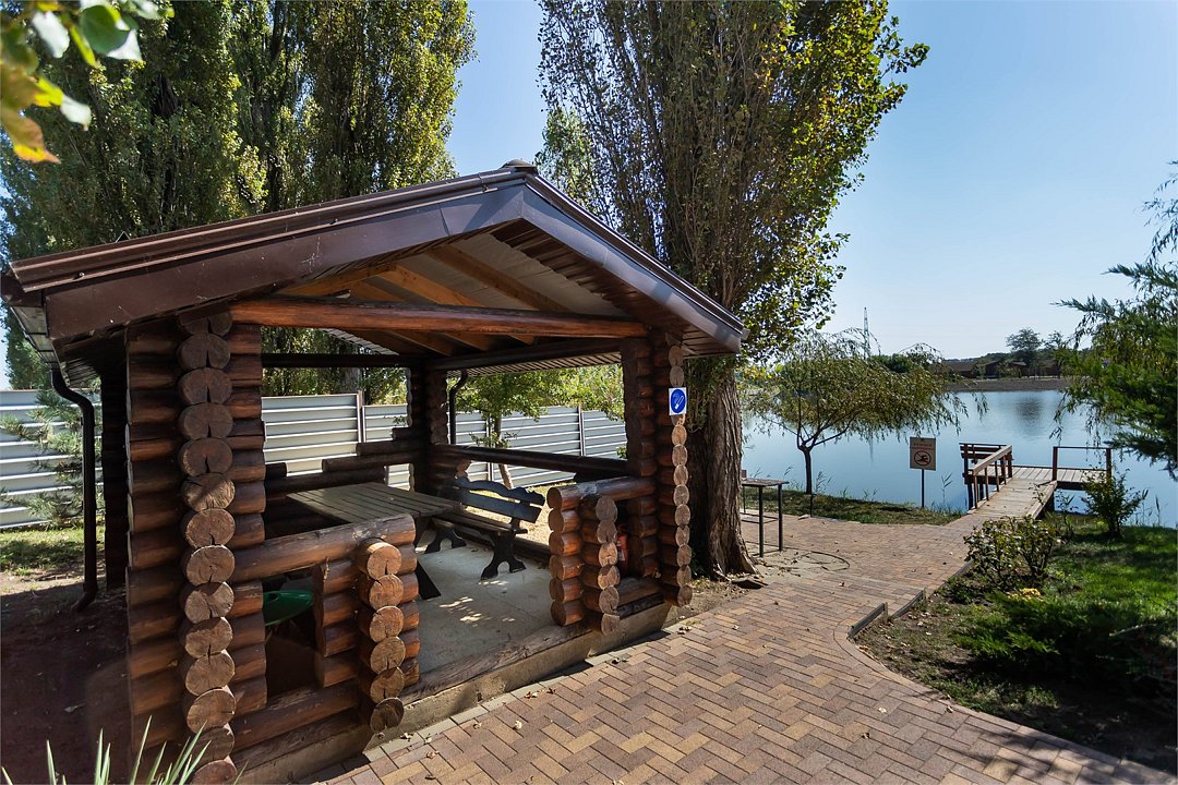 На территории — сорок шесть удобных мостиков и уединённых мест, прокат снастей (удочки, садки и прочее), а также зоны для отдыха: просторные беседки для больших компаний и компактные места на шесть человек с собственным причалом; для комфортного проживания предлагаются уютные домики рыбака с мангалами и частными причалами.