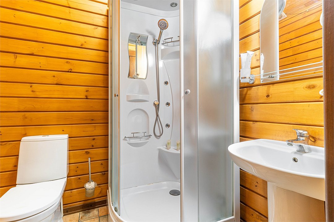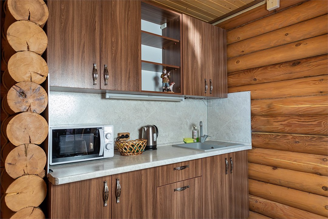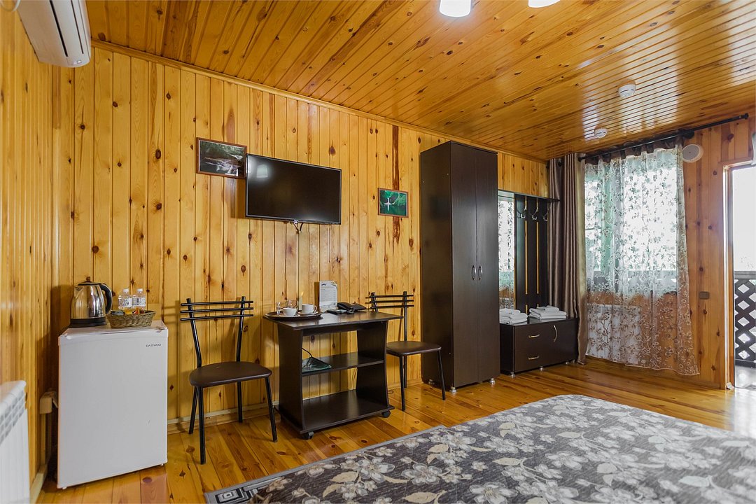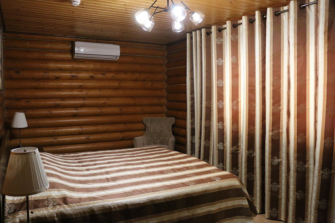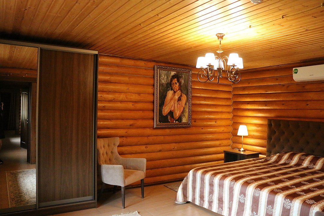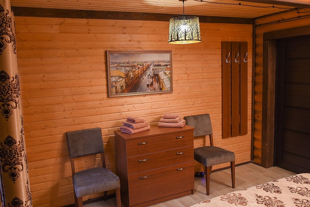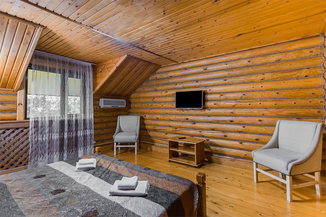 Большие кровати позволяют прекрасно выспаться и набраться сил вдали от шумного города. Деревянный декор стен создает атмосферу тепла и уюта.