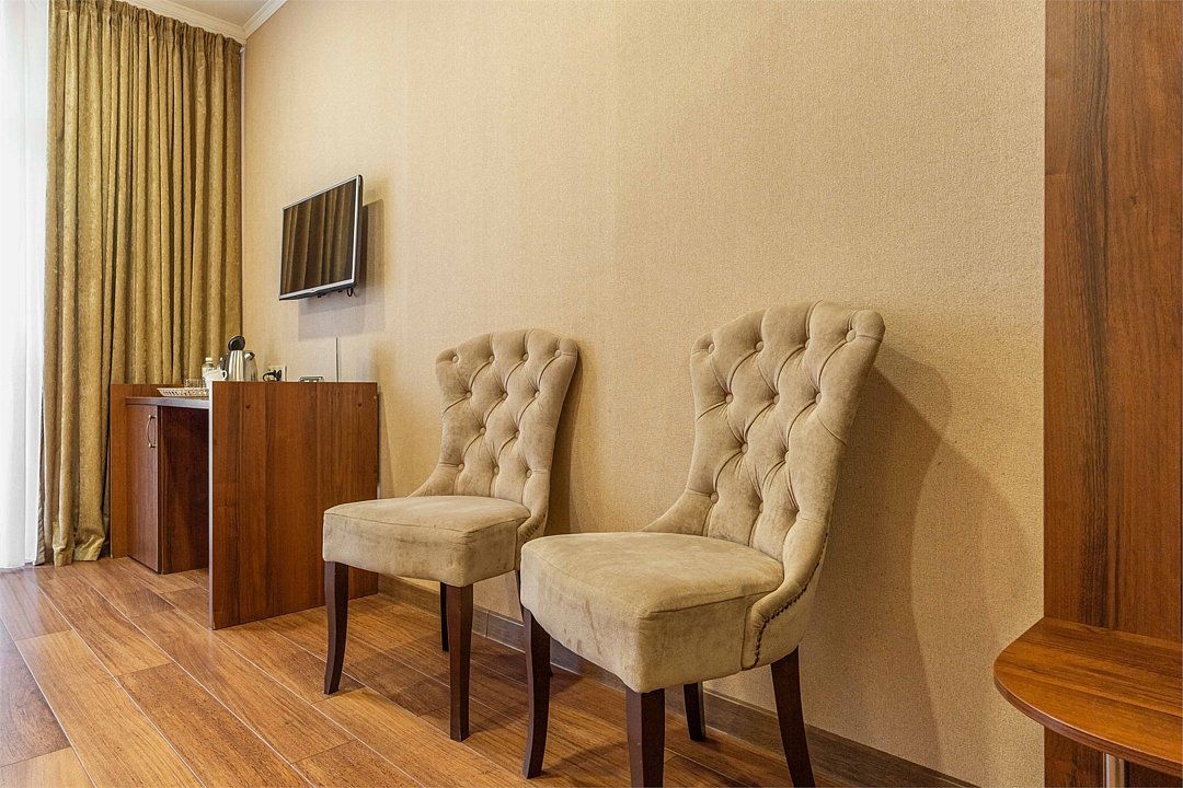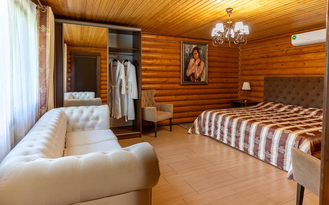 Наполненные светом, просторные, однокомнатные, улучшенные номера в отеле "Усадьба Фамилия" созданы для тех, кто ценит пространство. Большая двуспальная кровать, удобная зона отдыха и просторная ванная комната – всё ради беззаботного отдыха.