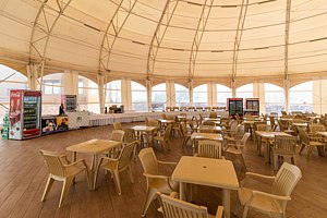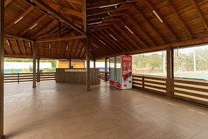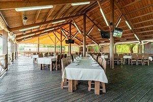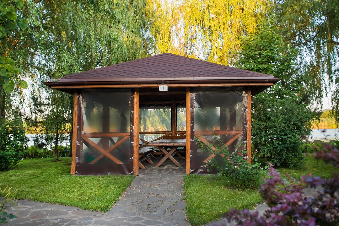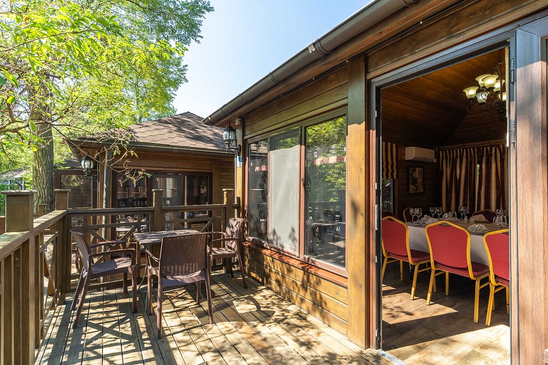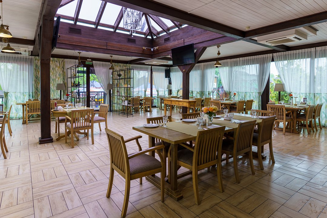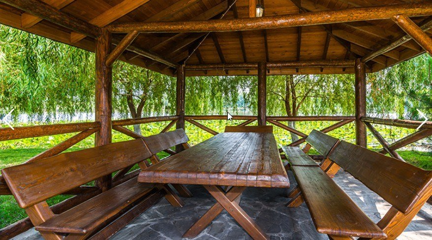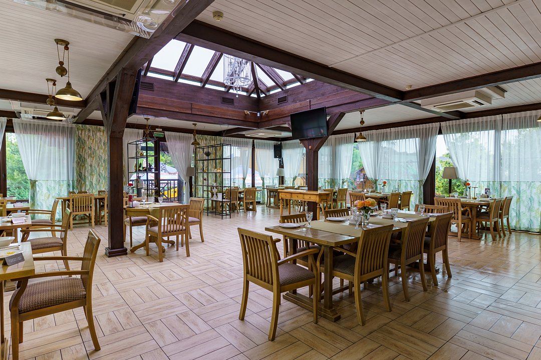 Для защиты от погодных условий и яркого солнца по периметру установлены пластиковые рулонные шторы. Наличие современных ТВ-плазм позволяет организовать презентации и развлекательные программы, обеспечивая комфортное проведение мероприятий в любую погоду. Гости могут наслаждаться живописными видами и приятной обстановкой, независимо от капризов природы.