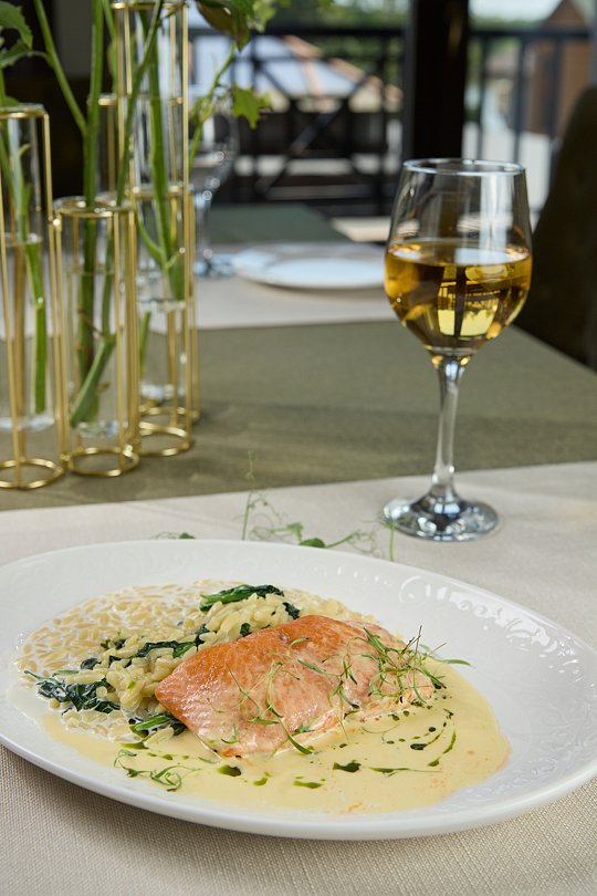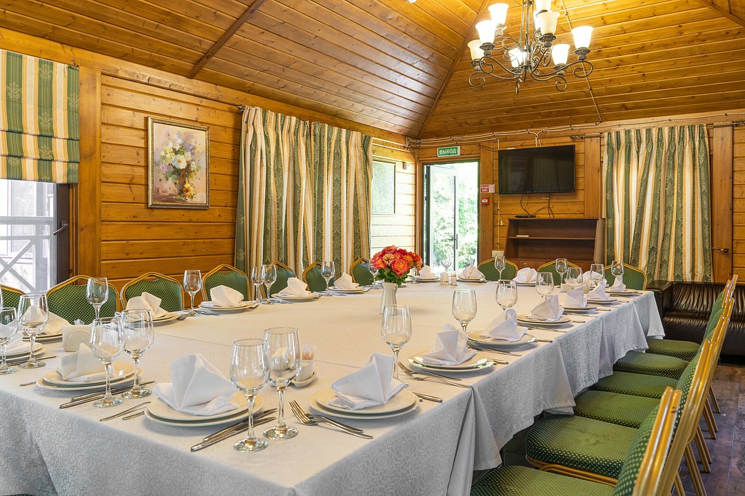 Кухня собственного производства обеспечивает высокое качество блюд и позволяет гибко подбирать меню в зависимости от формата события. Для выездных регистраций, фотосессий и дополнительных мероприятий предусмотрена открытая прилегающая территория с пирсом на пруду, где гости могут наслаждаться живописными видами.