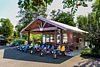 Средний пирс — уютная банкетная площадка площадью несколько десятков квадратных метров с живописным видом на реку. Она идеально подходит для камерных праздников и деловых встреч с количеством участников от десяти до сорока пяти человек. Под навесом установлены рулонные пластиковые шторы, которые регулируют уровень освещенности и защищают от ветра и солнечных лучей, создавая комфортную атмосферу независимо от погодных условий.