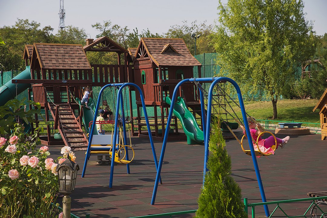 Территория, простирающаяся вдоль реки Кочеты, предоставляет разнообразные возможности для отдыха для всех возрастов. Для детей здесь созданы игровые площадки, бассейны, детские комнаты, прокат самокатов и велосипедов, а также развлекательные программы. Взрослые могут заняться плаванием, теннисом, футболом, верховой ездой и многими другими активностями. В конце насыщенного дня гости могут расслабиться в СПА-центре, посетить русскую баню, сауну или хамам. Это идеальное место, чтобы забыть о повседневных проблемах и восстановить силы.