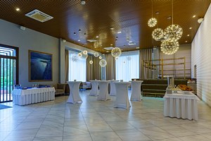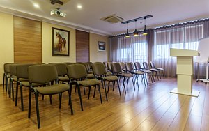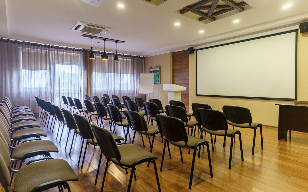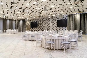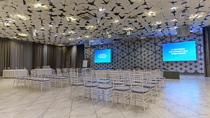 Читать полностьюБольшой конференц‑зал, занимающий около четырехсот квадратных метров, подходит для мероприятий, на которых может присутствовать до трехсот человек. Просторное помещение оборудовано современными LED‑экранами, световым и звуковым оборудованием, а также трибуной для ораторов, что делает его идеальным для масштабных презентаций и публичных выступлений.