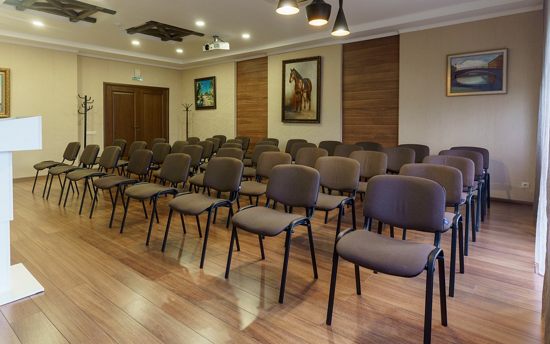 В зале установлен плазменный телевизор для презентаций и трансляций, а также системы кондиционирования и отопления, обеспечивающие комфорт в любое время года.