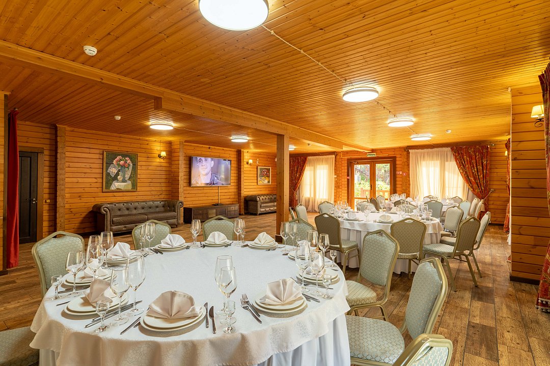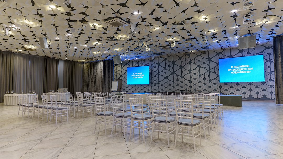 Усадьба «Фамилия» располагает роскошным банкетным залом, площадь которого составляет пятьсот квадратных метров, и который может принять от шестидесяти до трехсот гостей. Это делает его оптимальным как для небольших семейных торжеств и свадеб, так и для масштабных корпоративных мероприятий. Пространство оснащено современными звуковыми и световыми системами, LED-экранами и климат-контролем, что гарантирует комфорт и эффектное проведение любой программы в любое время года.