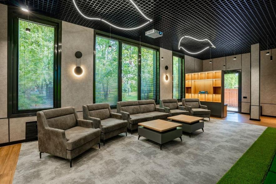 Большой конференц‑зал, занимающий около четырехсот квадратных метров, подходит для мероприятий, на которых может присутствовать до трехсот человек. Просторное помещение оборудовано современными LED‑экранами, световым и звуковым оборудованием, а также трибуной для ораторов, что делает его идеальным для масштабных презентаций и публичных выступлений.
