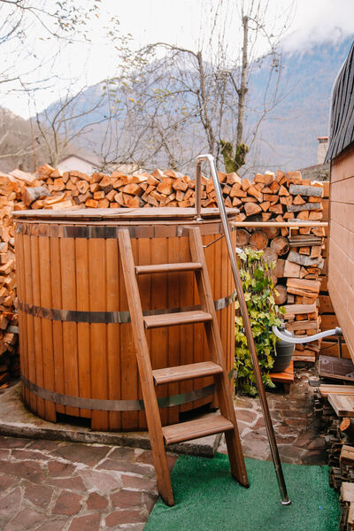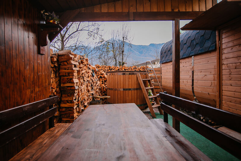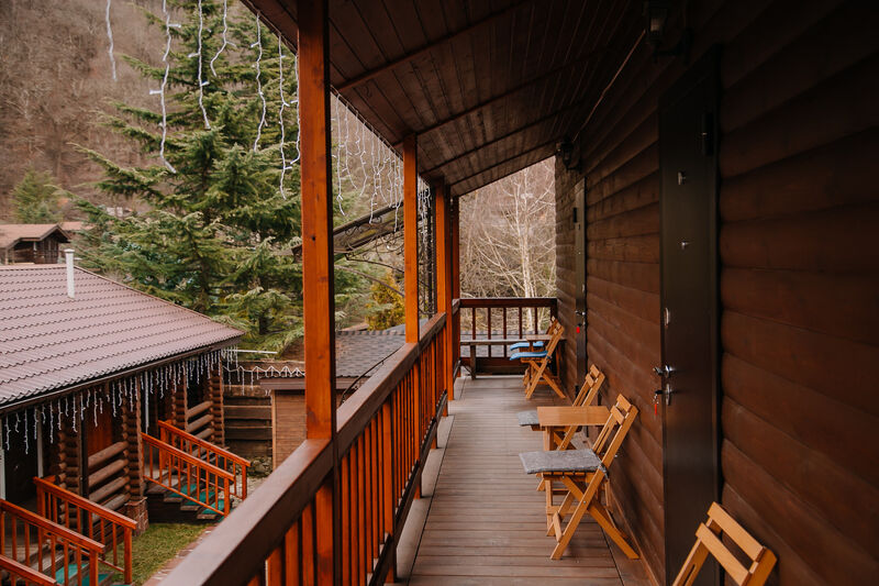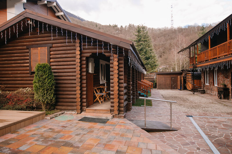 Исключительно гармоничные в окружающем пейзаже коттеджи из сруба, с самыми современными номерами, созданными для исключительного отдыха. Территория комплекса - одна большая фотозона на фоне гор, при этом на ней удивительным образом вписались небольшой банный комплекс, круглогодичный бассейн с подогревом и мангальная зона.