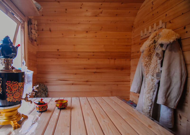 Настоящая русская парная, с печью на дровах. Дарит чудесный жар и аромат.