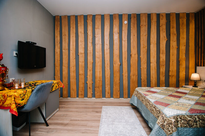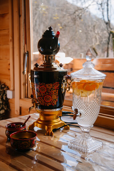 В номерах на каждом шагу вас ожидают сюрпризы, дающие понять, как это - отдыхать по-русски. Самовар вместо чайника, баранки вместо круассана, меню исконно русской кухни на завтрак помогут сделать отдых интересным и запоминающимся.