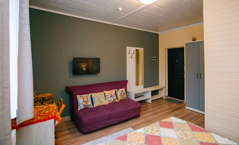 с/у, душ, ТВ, 1 двуспальная кровать, раскладной диван, микроволновая печь, мини-холодильник, чайник, шкаф
