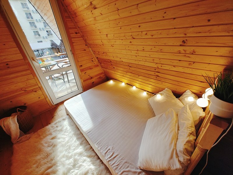 Вас ждёт проживание в уютных эко-домиках с продуманной планировкой и интересное времяпрепровождение.
