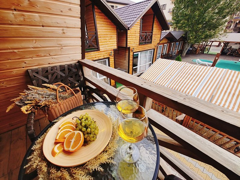 База отдыха «Кокос» расположена прямо на берегу Черного моря, всего в 30 метрах от песчаного пляжа.