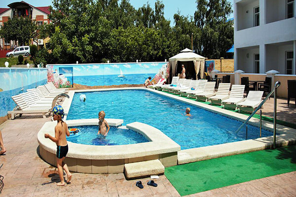 К услугам гостей - открытый бассейн и зона отдыха с шезлонгами, доступны бытовые услуги. В гостевом доме регулярно проводятся анимационные интерактивные программы, в том числе и для детей. К тому же для маленьких гостей на территории организована детская игровая площадка, есть специальная секция в общем бассейне и отдельное меню в столовой.