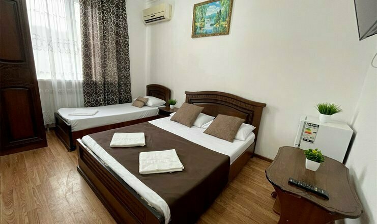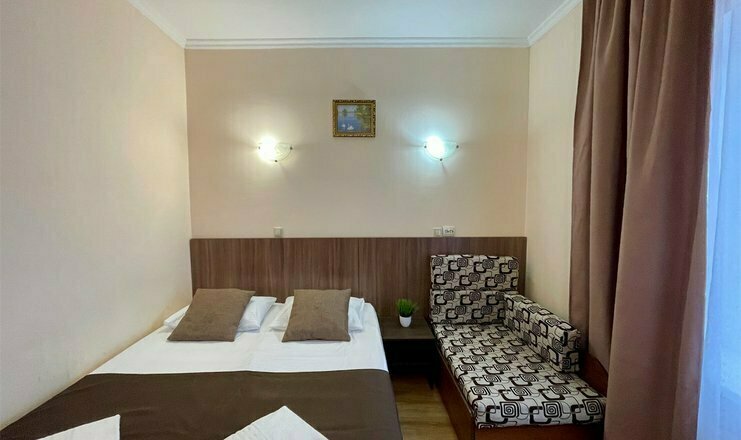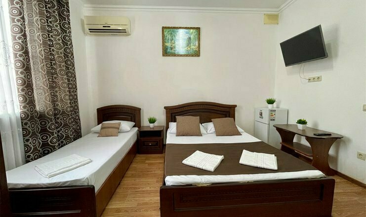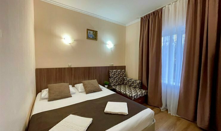 Гостевой дом «Король Лев» расположен на курорте Лоо, в живописных окрестностях Сочи. До галечного пляжа всего 10 минут и 15 минут ходьбы до аквапарка «Аквалоо». Уютные номера выполнены в стандартном стиле. В каждой комнате есть кондиционер, телевизор, холодильник, собственная душевая комната и свежее постельное белье. В наличии номера с балконом и без, а так же номера двухкомнатные с общей террасой. По всей территории гостиницы работает Wi-Fi. К вашим услугам бассейн, собственный сад. Для маленьких гостей обустроена детская игровая площадка с игрушками. От железнодорожной платформы "Горный воздух" до гостевого дома прогулка занимает 10 минут, а до международного аэропорта Адлер-Сочи можно доехать за 50 минут.
