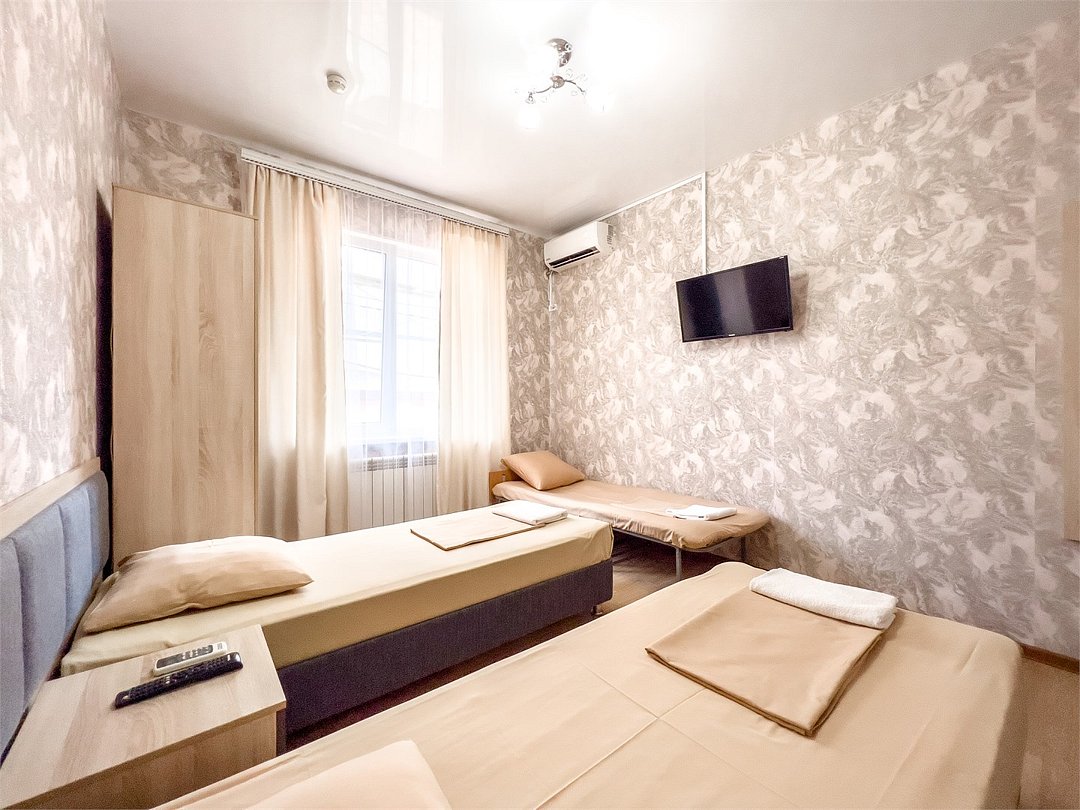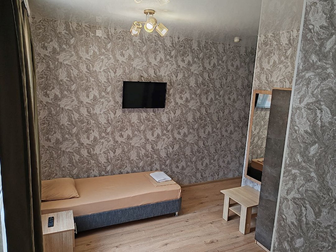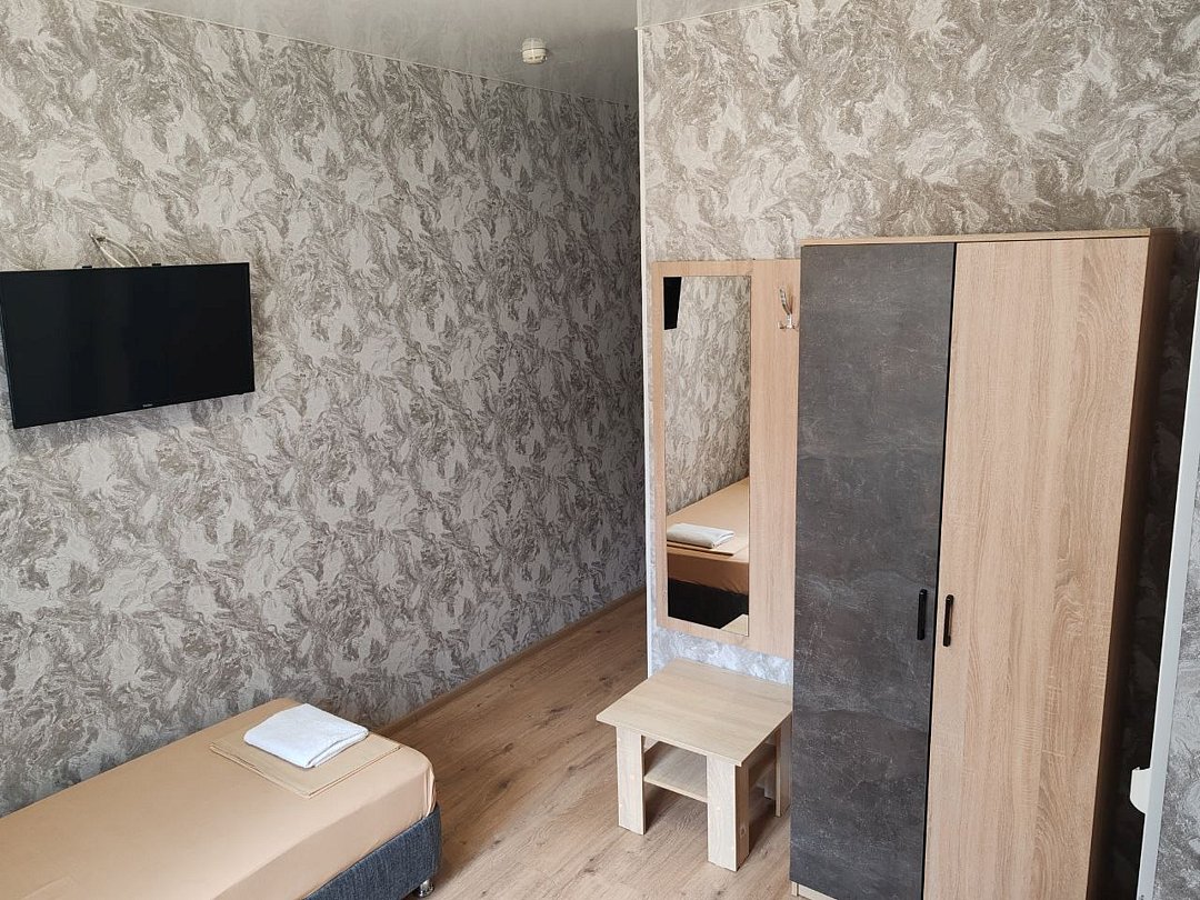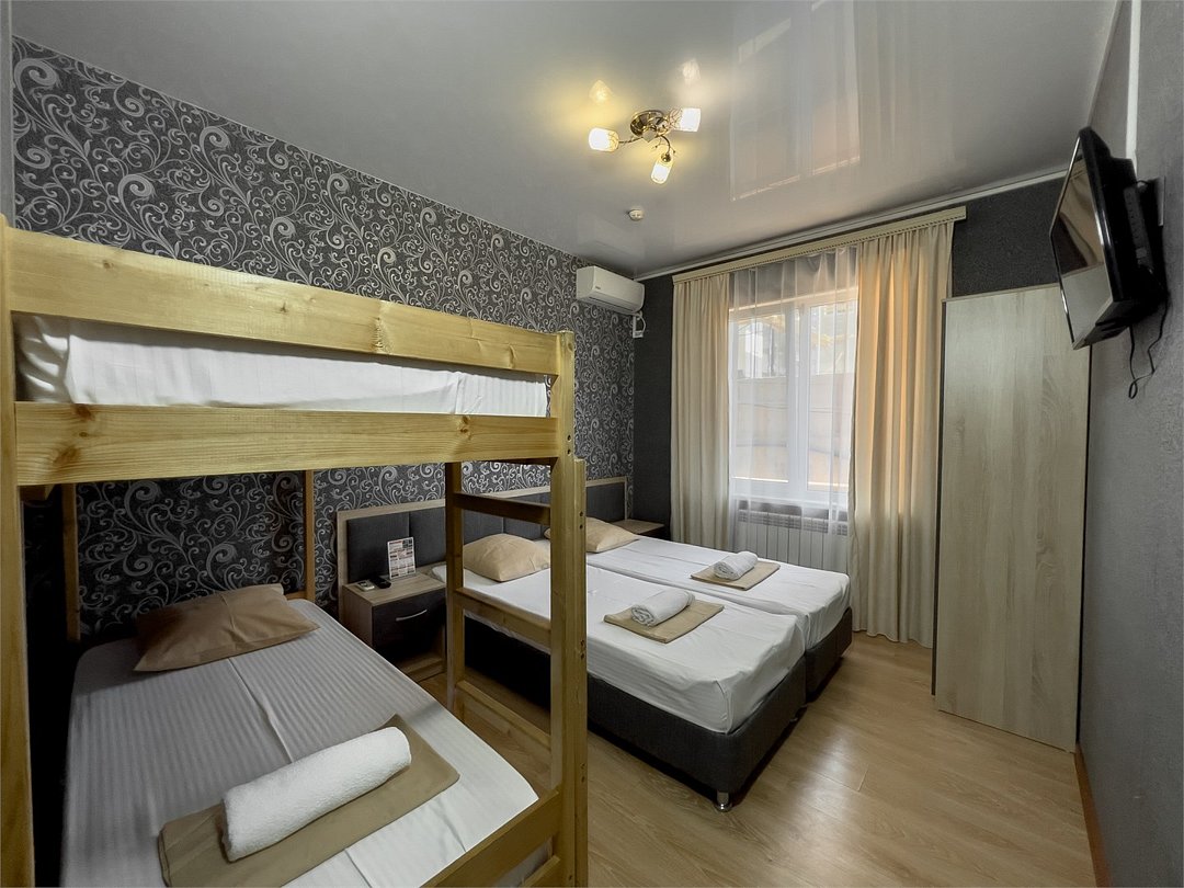 Однокомнатный номер 14 -15 кв.м. В комнате две односпальные кровати и двухъярусная кровать (Ограничения по весу до 60 кг.) Максимальное размещение взрослых -3 человека Номер стандарт оборудован :санузлом,душем,есть сплит система и телевизор. Гладильная доска с утюгом ,чайник и холодильник для общего пользования находятся на этаже. Режим работы с 8:00-23:00 Ночное заселение ,ранний заезд по предварительной договоренности за доп.плату .(при наличии свободного номера)Услуги и удобства