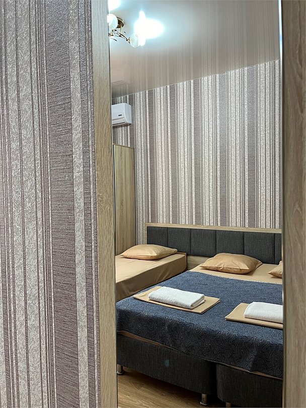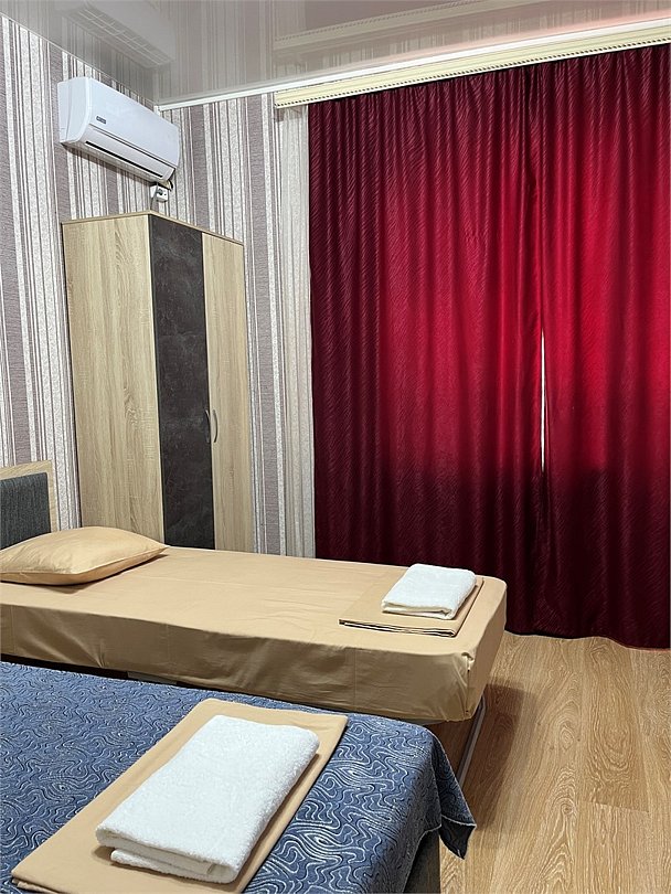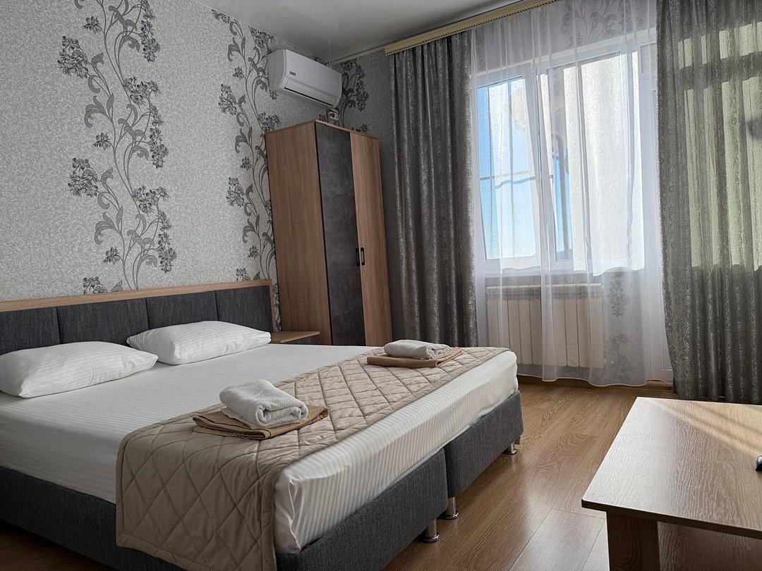 Уютные номера предлагают современный комфорт и спокойную атмосферу. Двуспальная кровать обеспечит качественный отдых. Большие окна наполняют пространство естественным светом, добавляя тепла. Оснащение номера: Двуспальная кровать Настенный телевизор Прикроватные тумбы Кондиционер Шкаф для одежды Собственная ванная комната с душем и туалетом. Возможно размещение дополнительного места в номере.(еврораскладушка) Индивидуальный балкон(не во всех номерах) Режим работы с 8:00-23:00 Ночное заселение ,ранний заезд по предварительной договоренности за доп.плату .(при наличии свободного номера)Услуги и удобства