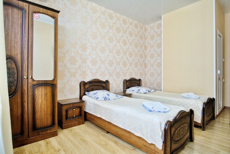 кабельное телевидение, Wi-Fi, фен, санузел, банные полотенца, гигиенические средства, две односпальные кровати, тумбы, шкаф для одежды, вешалки, журнальный столик, зеркало, унитаз, раковина, двухъярусные кровати, отопление, душ, ламинат, туалетные средства, туалет, сплит-система, мангал, телевизор с плоским экраном, москитная сетка, номер для некурящих, общественный бассейн, уборка номера, услуги прачечной (платно), вешалки-плечики, частный двор, без вида, можно с питомцами, пеленкаВ гостиничном номере