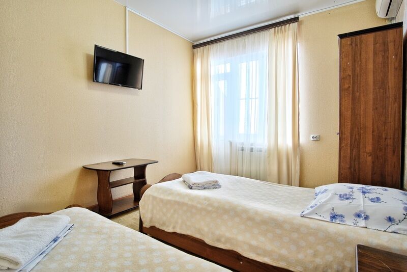 телевизор, кабельное телевидение, Wi-Fi, фен, вентилятор, банные полотенца, гигиенические средства, две односпальные кровати, шкаф для одежды, журнальный столик, зеркало, унитаз, раковина, отопление, душ, стул, тумба, туалетные средства, цифровое тв, телевизор с плоским экраном, москитная сетка, номер для некурящих, без вида, можно с питомцами, пеленкаВ гостиничном номере