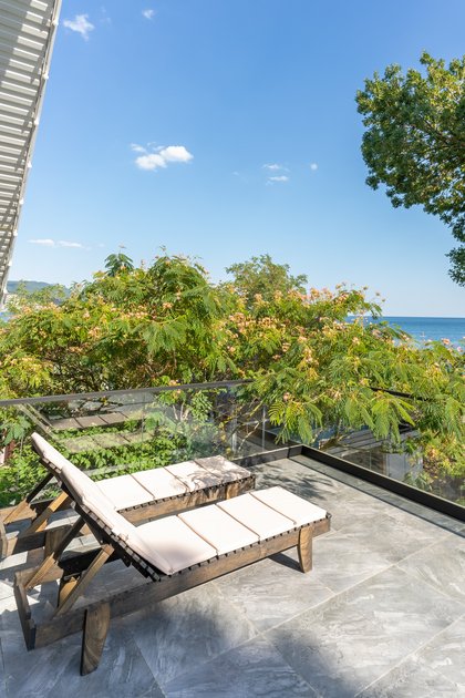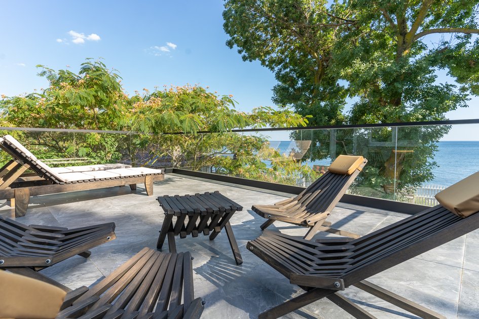 На кухне предусмотрено все необходимое для удобства и удовольствия: посудомоечная машина, кофемашина, льдогенератор, ручная соковыжималка и даже проектор для уютных вечеров. Второй этаж открывает четыре спальни, дополнительный санузел с душевой и просторную террасу с шезлонгами и лаундж-зоной, откуда открывается завораживающий вид на море. Для семей с детьми во дворе предусмотрена игровая площадка.