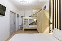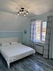 В коттедже два этажа. Первый этаж: кухня-столовая, спальня на четырех человек, санузел, сауна. Второй этаж: четыре спальни, санузел, балкон. Пять спален и двенадцать спальных мест (четыре двухспальные и четыре односпальные кровати + по запросу возможно еще два дополнительных места). Полностью укомплектованные спальные места на двенадцать человек.
