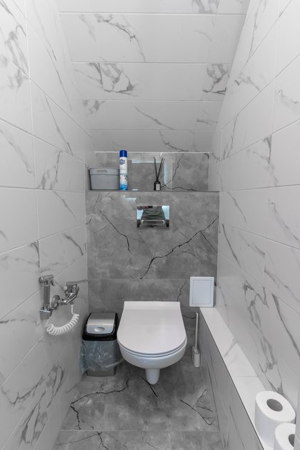 Два санузла расположены на первом и втором этаже, горячая вода подается круглосуточно. На обоих этажах установлены сплит-системы, которые работают как на охлаждение, так и на обогрев.