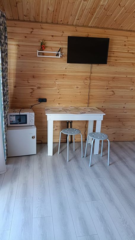 Есть возможность размещения в 4-местном коттедже или в 6-местном, с двуспальной кроватью на втором ярусе.