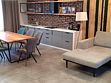 В коттедже имеется три санузла, кухня-гостиная, удобная и современная мебель, интернет Wi-Fi. Среди оборудования предусмотрены телевизоры ЖК в каждой комнате, сплит-система, холодильник, духовой шкаф, микроволновая печь, плита электрическая, посудомоечная машина, электрочайник, кофеварка, набор посуды, утюг, гладильная доска, стиральная машина, фен, туалетно-косметические принадлежности, сушильный стеллаж на 10 пар обуви с бактерицидной лампой для лыжников. Рядом с коттеджем на улице обустроена зона отдыха с мангалом, шампурами, решеткой.
