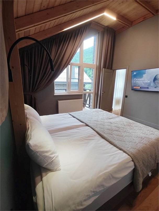 Wi-Fi, фен, плита для приготовления пищи, кофемашина, микроволновая печь, утюг, санузел, биде, теплый пол, банные принадлежности, банные полотенца, тапочки, балкон с красивым видом, раковина, три двуспальные кровати, вид во двор, четыре односпальные кровати, три ванные комнаты, туалетные средства, туалет, сплит-система, вид на горы, телевизор со Smart TV, гигиенический душ, духовой шкаф, пять двуспальных кроватей, четыре телевизора, мыло, можно с питомцамиВ коттедже