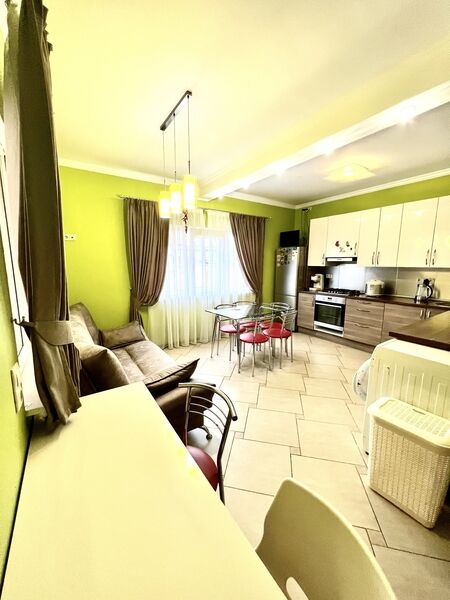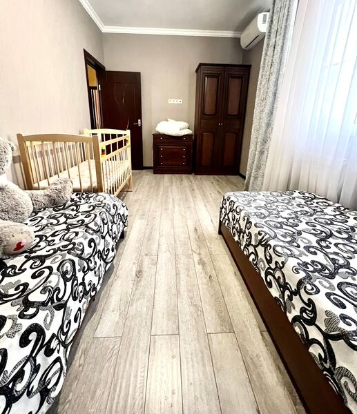 Коттедж 2-этажный, рассчитан на комфортное размещение 13 человек. Перед домом огороженная небольшая территория, где можно оставить автомобиль и есть мангал. Большая полностью оборудованная кухня, гостиная и 3 спальни.