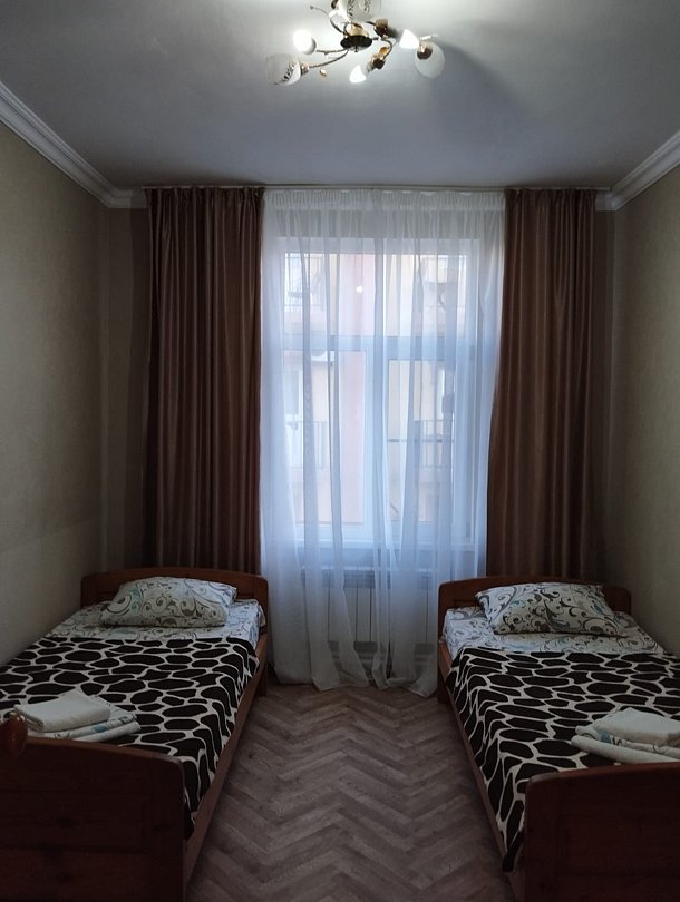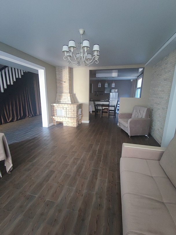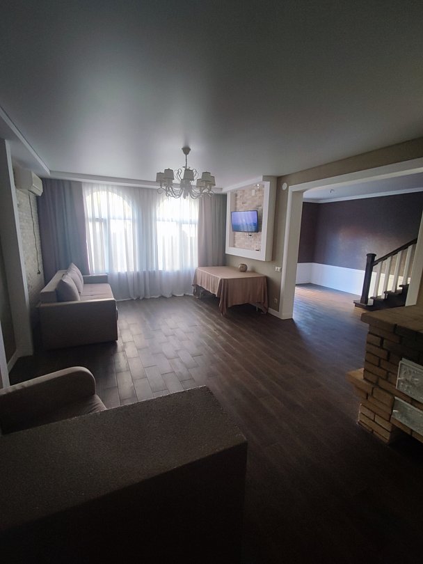 Двухэтажный дом вмещает до 10 человек и расположен на благоустроенной закрытой территории. На первом этаже помещены кухня-гостиная, а на втором — четыре спальни и санузел с ванной. Номера оформлены в современном стиле с лаконичным, светлым интерьером и оснащены всей необходимой техникой.