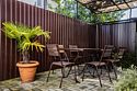 В коттедже закрытая придомовая территория. Во дворе имеется место для отдыха, оснащенное большими обеденными столами и стульями. Коттедж оснащен: WI-FI, отоплением и водоснабжением и сплит-системой. Парковка находится за территорией дома.