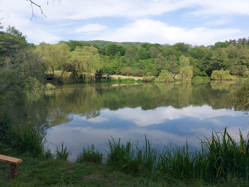 - в пяти минутах ходьбы, живописное озеро с баней, беседками для отдыха и рыбалкой. Беседка и рыбалка для гостей коттеджа в подарок.