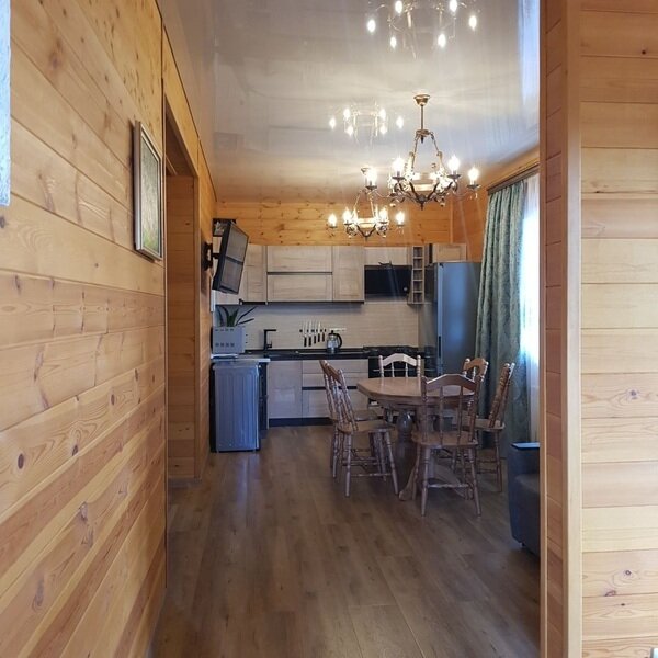 Дом включает спальню с двуспальной кроватью, зал с раскладным двуспальным диваном, столовую с зоной отдыха, ванную комнату, террасу с мебелью, мангальную зону, парковку на 2 машины.