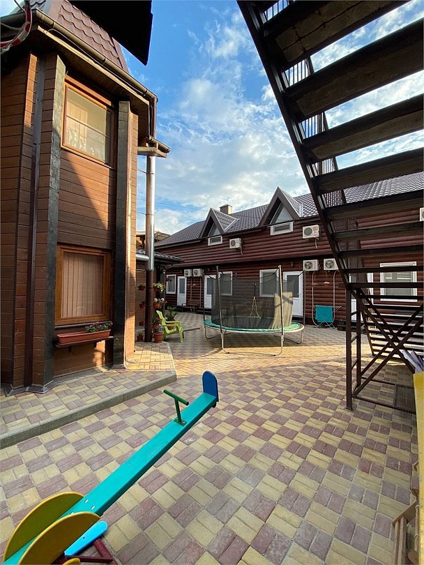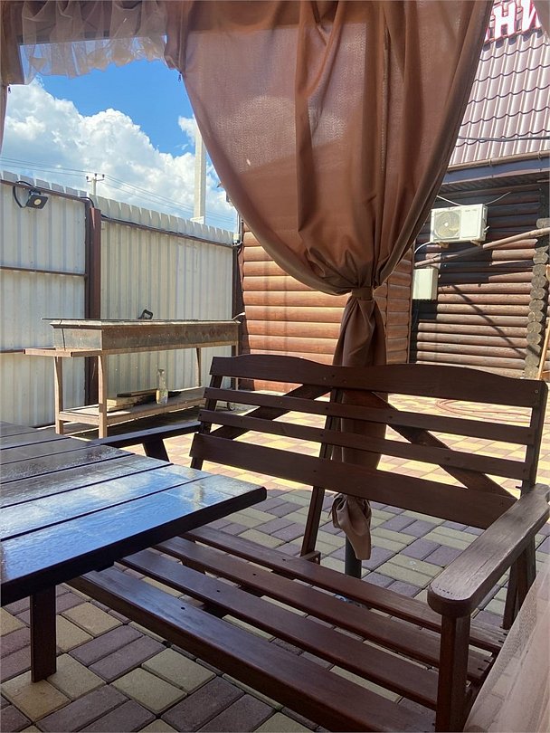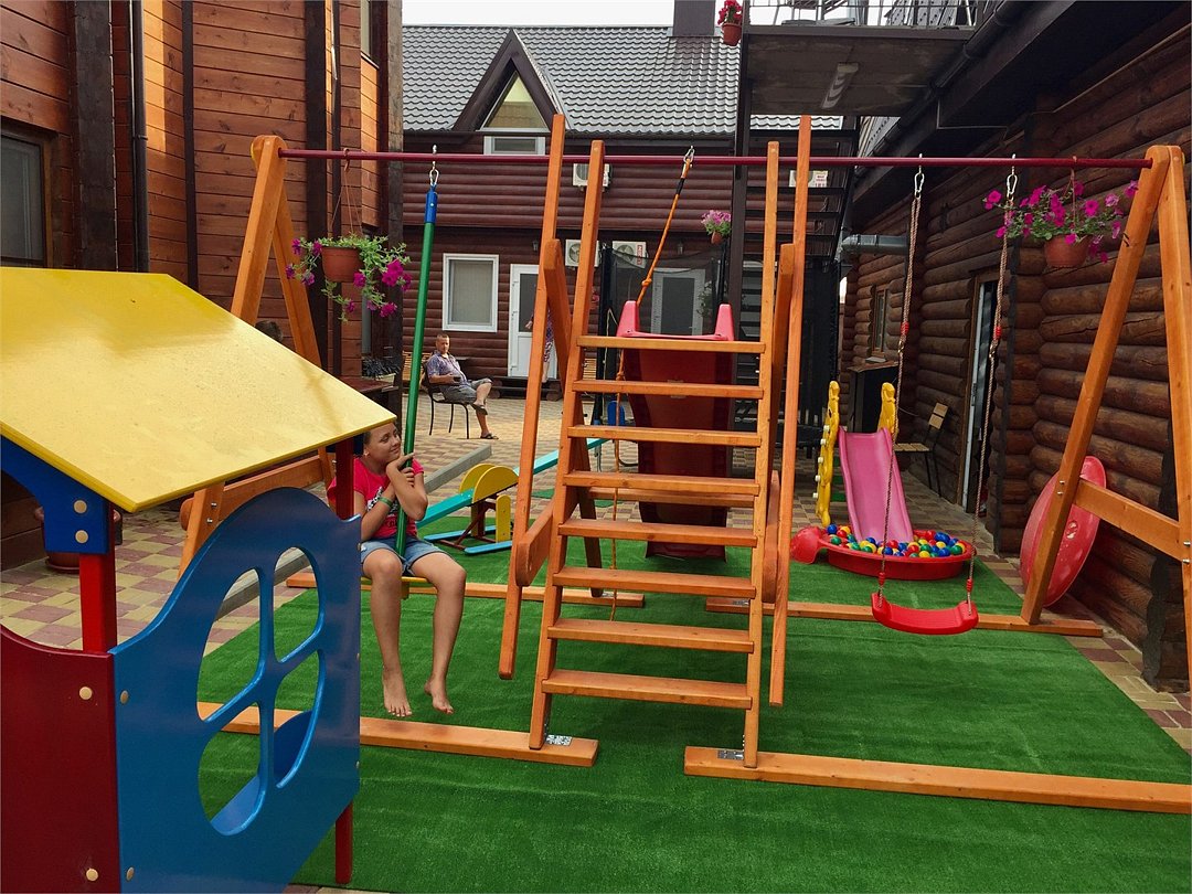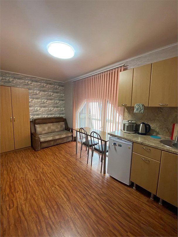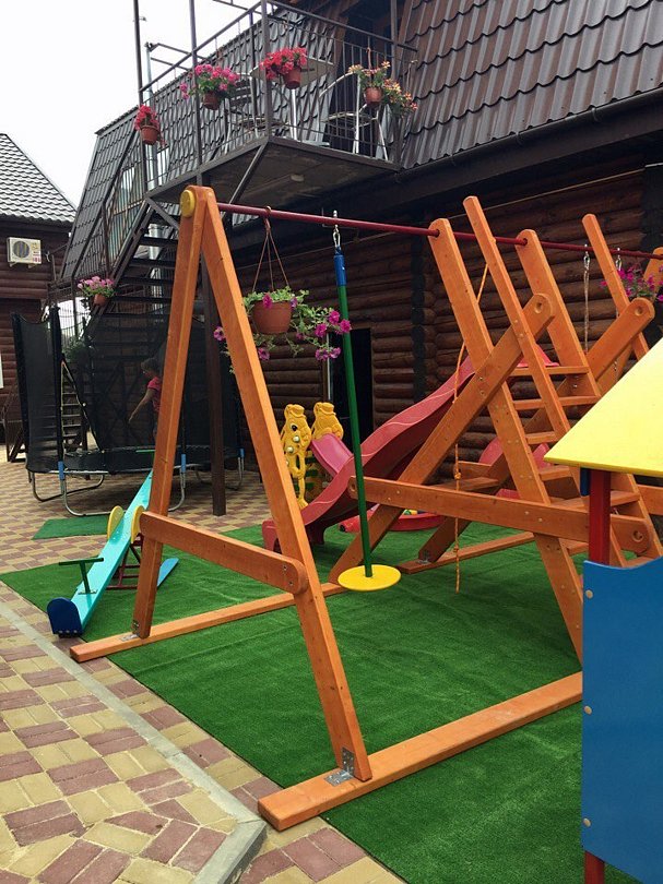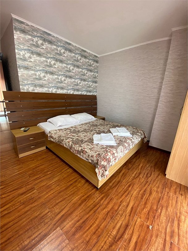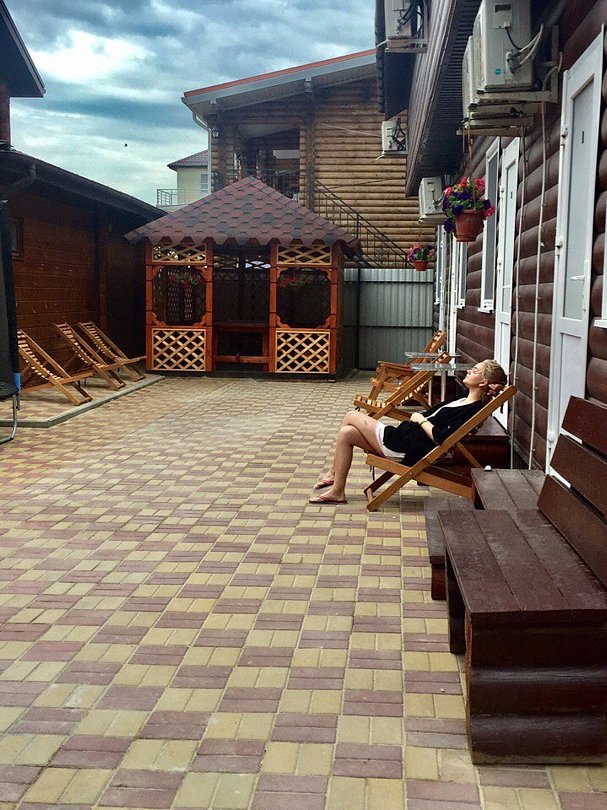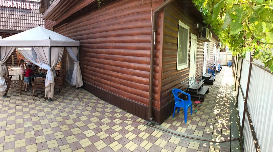 июнь 2019 г.Отдохнули классно.Отдыхаем здесь вторую неделю. Цена-качество в балансе. От гостиницы до до моря и центра 15 минут. Но мы катаемся на трансфере с Сергеем. 3 минуты и на море. Питание хорошее,В магазине есть все для жизни. Лестницы к номерам маленькие, что большой плюс для наших детей.На втором этаже есть гладильная доска и утюг, плита , можно готовить кушать. Чайник в номере, мультика. Номер у нас как студия, своя мини-кухня, обеденная зона, свой сан узел, телек, вай фай, все классно, очень уютно. Дети восторге от площадки детской. Там и басик и кенгуру батут, что стоит на пляже 200 р на 5 минут. И горки и качели. Полотенца и постельное бельё меняют вовремя. Уборка в номере регулярная. Персонал очень приятный. Есть услуги прачечной, недорого. Уютный внутренний дворик с беседками , лежаками. С парковкой проблем нет.