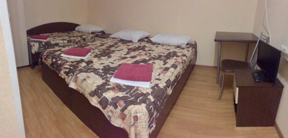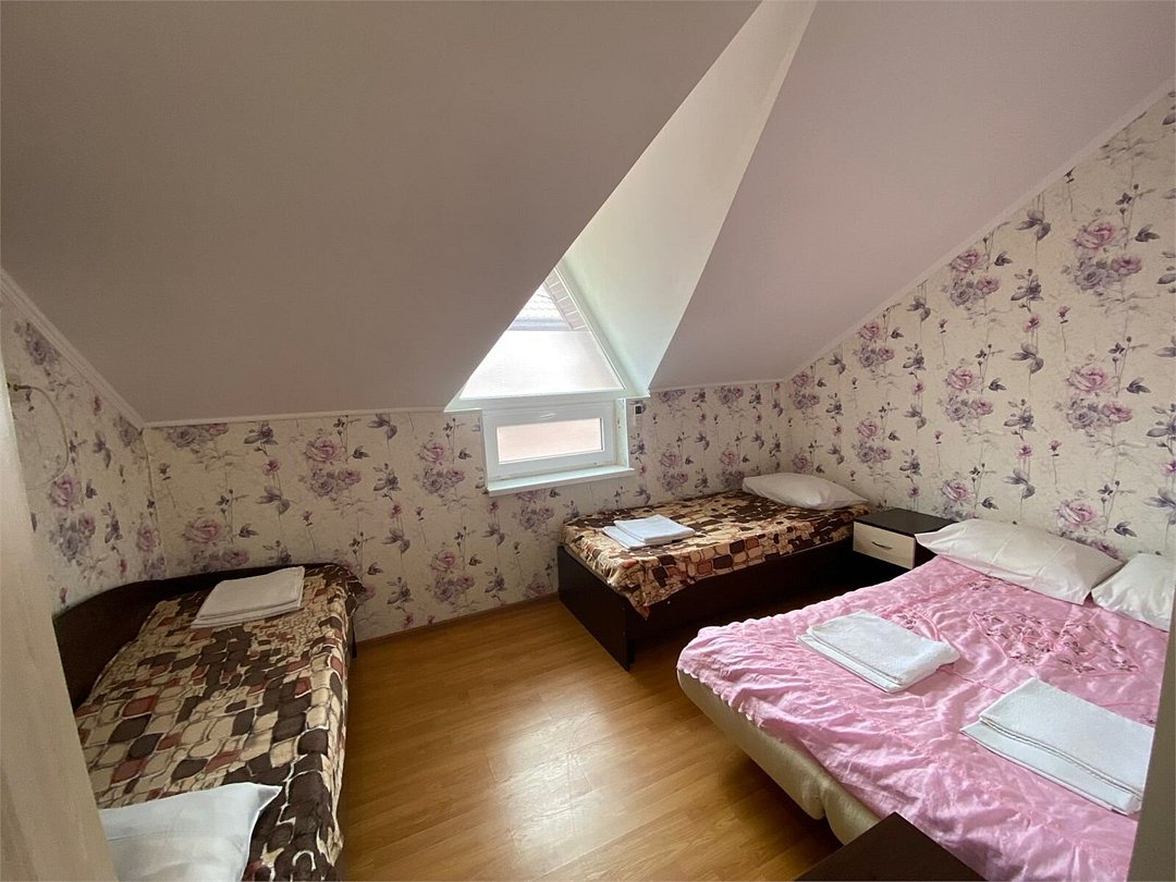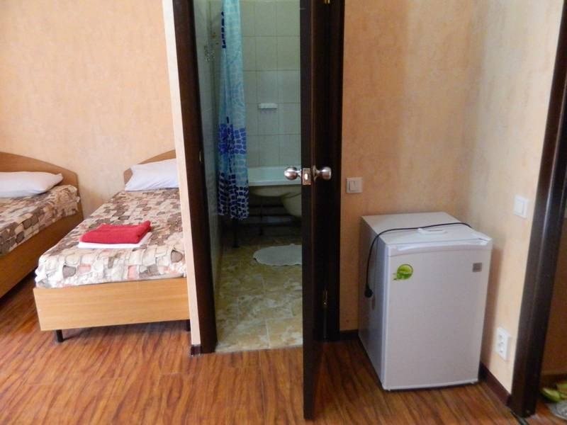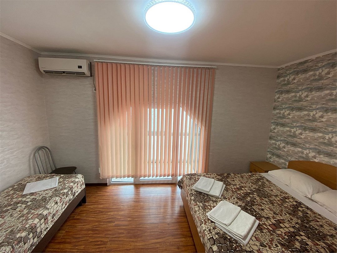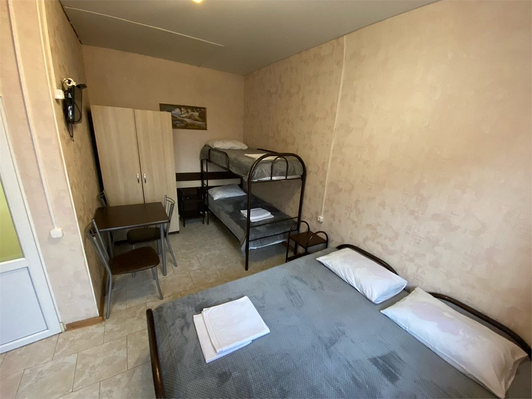 3-местный стандарт - номер находится на 2-м этаже, в номере двуспальная и одна односпальная кровати, либо три односпальные кровати (по выбору), в номере кондиционер, санузел с душем, тв, стол, стулья. Кухня общего пользования. Свой отдельный вход.Услуги и удобства