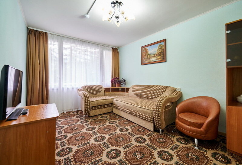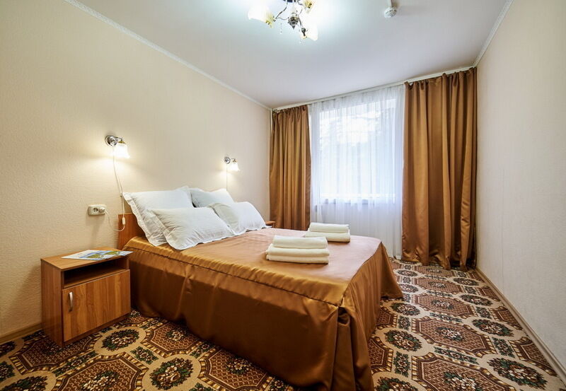На закрытой благоустроенной территории в 30 гектаров расположено два многоэтажных жилых корпуса и отдельное здание столовой. Номерной фонд рассчитан на 500 человек и предлагает гостям как однокомнатные, так и просторные двухкомнатные номера с жилой площадью от 11 до 22 кв. метров. Гости на базе отдыха получают трехразовое питание в столовой, но при желании отдыхающие могут посетить кафе и рестораны курорта, которые располагаются на небольшом удалении.