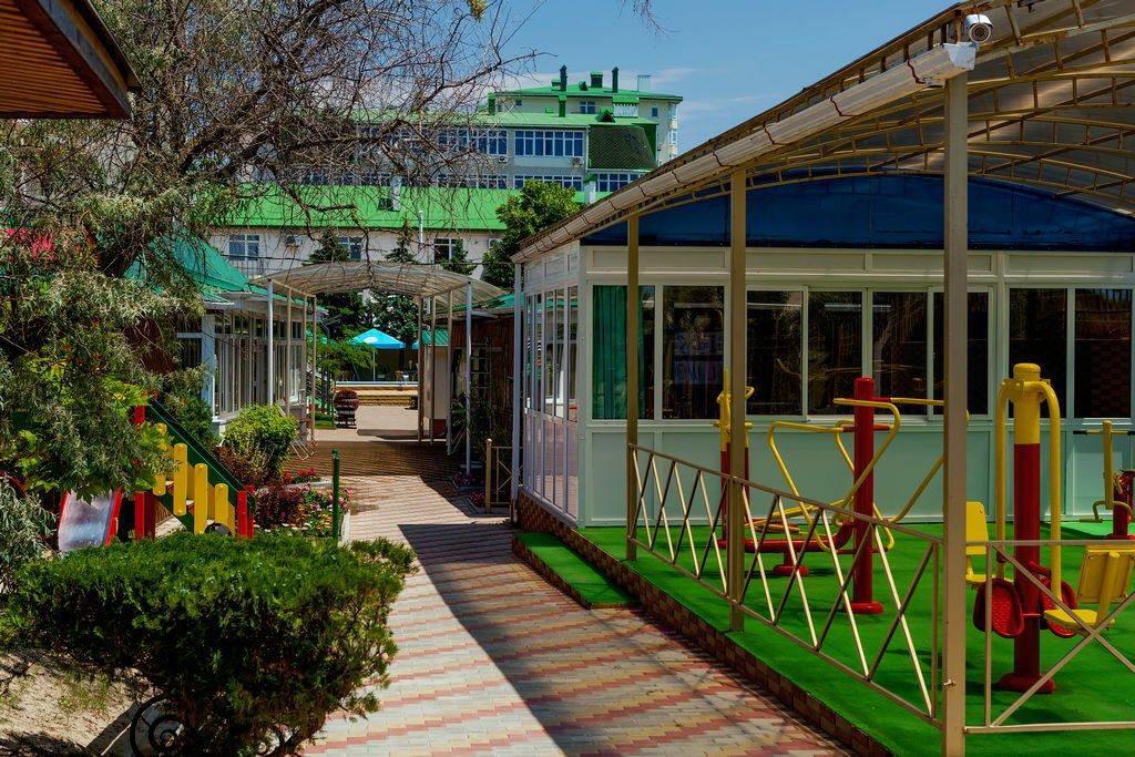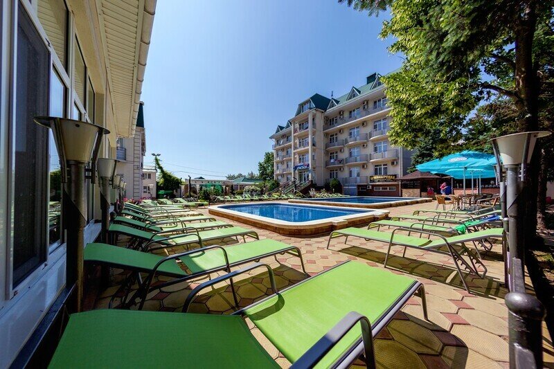 ДостоинстваРасположен пансионат неплохо, до центра Анапы пешком можно дойти за 20 минут. Территория чистая и ухоженная. Есть 2 бассейна. Море очень близко. Присутствует маленький спортивный уголок, где можно размяться или сделать зарядку. Питание нормальное, блюда разнообразное. Все всегда свежее.