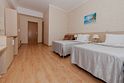 Комфортный однокомнатный стандартный номер с балконом с возможностью размещения до 3-4 человек. Расположены номера в 4 ккорпусе с 1 по 2 этаж (имеется лифт). Оптимально для отдыха семьи с размещением 1 гостя на кресло-кровати и 4-е дополнительное место на еврораскладушке или детской кроватки. Комплектация номера: две односпальные кровати, кресло-кровать, детская кроватка, сплит-система, холодильник, телевизор, телефон. Санузел: душевая кабина, косметические принадлежности, фен.Услуги и удобства