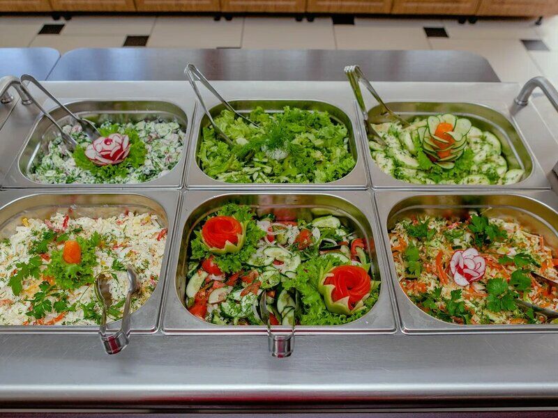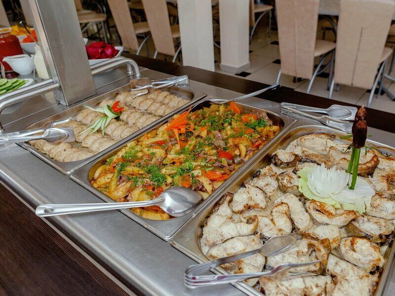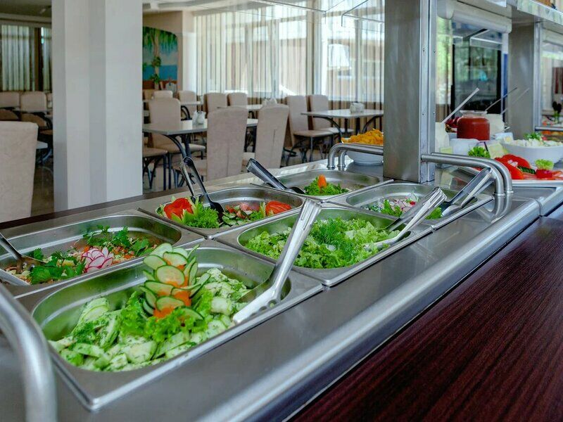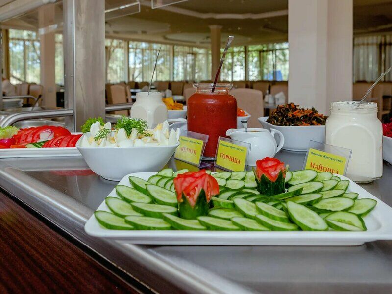Питание при количестве гостей от 30 человек организуется в формате «шведская линия», при загрузке столовой до 30 человек пансионат оставляет за собой право подачи в континентальном формате.