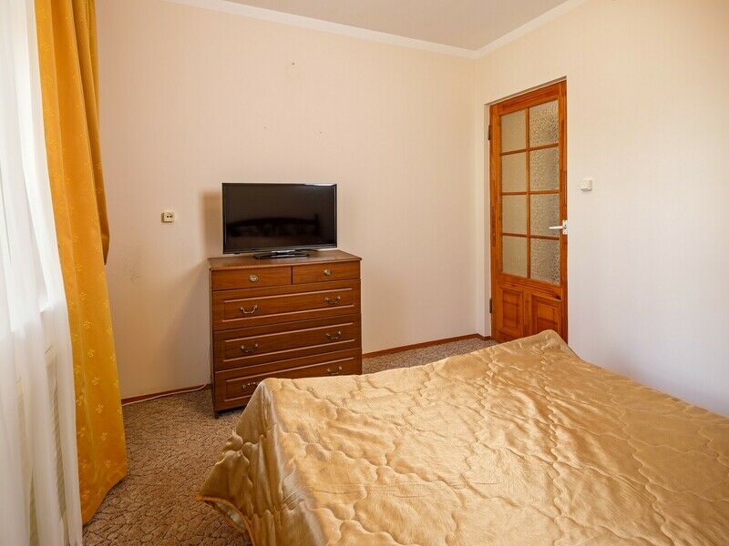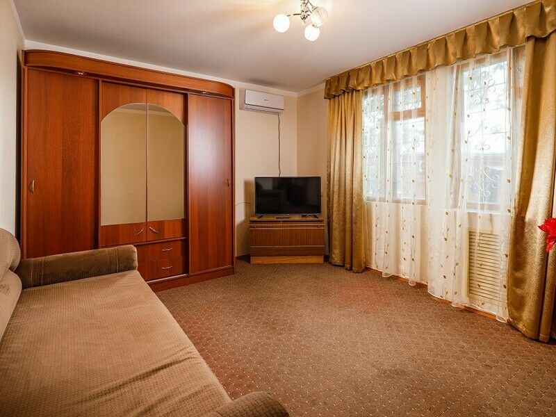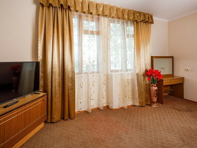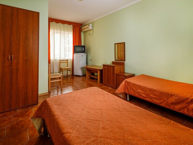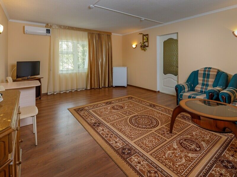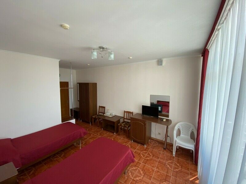 Одноэтажный корпус № 5А- этот корпус находится возле бассейна отеля. Территория корпуса огорожена. Корпус состоит из спальни, гостиной, кухни (газовая плита, посуда, эл.чайник, микроволновая печь), сунузел оборудован ванной, феном. Имеется открытая терраса. В спальни и гостиной имеются телевизоры.