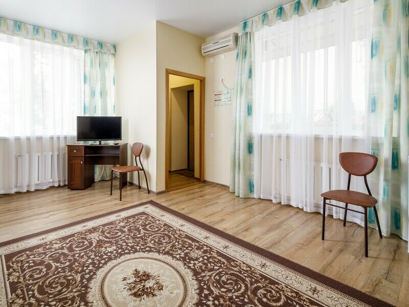 Жилой корпус пансионата “Кристалл” в Геленджике представляет собой современное 7-ми этажное здание с двумя лифтами, часть номеров расположены в коттеджах. Что касается категории номеров, то отдыхающие могут выбрать 4-местные Апартаменты или номер класса «Стандарт» с 1 или 2 комнатами. При заселении на основное место детей в возрасте 4-12 лет предоставляется скидка, если ребёнку нет 4-х лет, то его могут заселить без предоставления места, необходимо оплатить только коммунальный сбор. Для маленьких детей пансионат предоставляет игровой манеж. В номере установлена необходимая мебель: одно- или двуспальная кровать, диван, тумбочки, сплит-система, холодильник, телевизор. Санузел оснащается душевой кабиной. Уборка номеров проводится каждый день, бельё можно поменять раз в 3 дня. Гости пансионата могут воспользоваться услугами прачечной и получить выстиранную и выглаженную одежду.