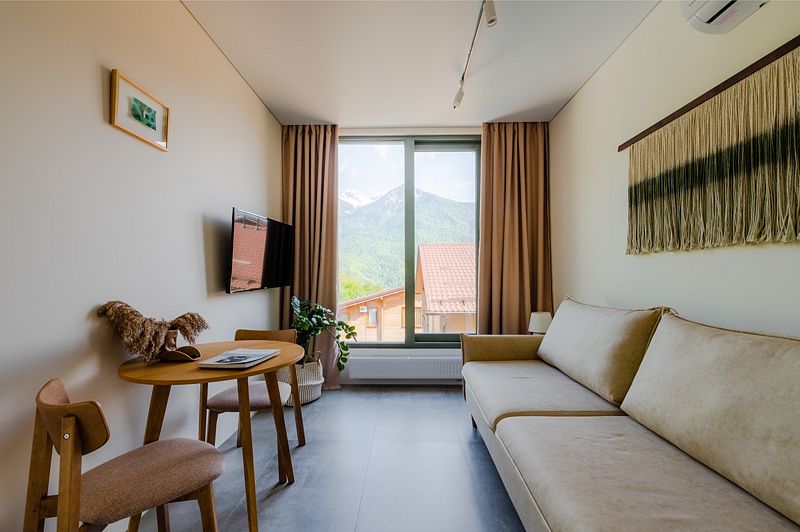 Гости могут остановиться в современных апартаментах со стильным интерьером. Номера оснащены всем необходимым: удобной мебелью, ванными комнатами с комплектами полотенец, телевизорами и Wi-Fi. На собственной кухне можно самостоятельно готовить еду. Для этого есть вся необходимая бытовая техника, посуда и столовые приборы. Для отдыха предусмотрена зона барбекю. Готовые блюда можно заказать в близлежащих ресторанах. На территории отеля расположен круглогодичный бассейн с подогревом, а также сауна и тренажерный зал.
