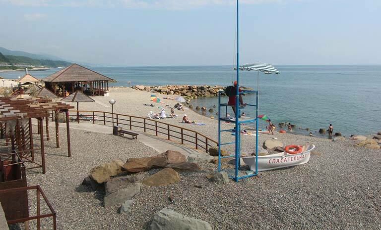 В 5 минутах ходьбы находится галечный пляж. Пляж благоустроен, на побережье установлены раздевалки, работает прокат лежаков, зонтиков и другой пляжной атрибутики, открыто кафе.