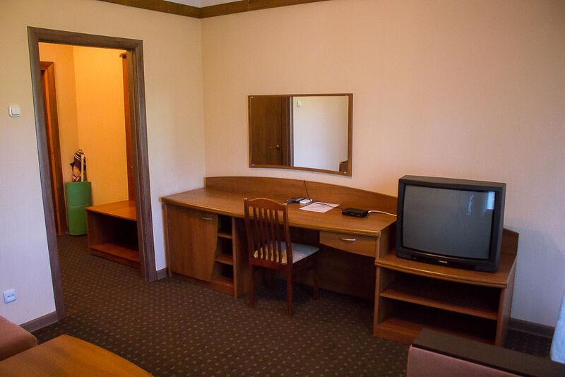 Пансионат занимает небольшую благоустроенную территорию с аллеями и зелеными насаждениями, на которой разместились два корпуса. Первый - главный 4-этажный корпус, 2ой – дополнительный 1-этажный. Жилой фонд, рассчитанный на 70 человек, предлагает гостям комфортабельные однокомнатные и двухкомнатные номера разной категории. В каждом имеется индивидуальный санузел, установлен кондиционер, есть телевизор и мини-холодильник.