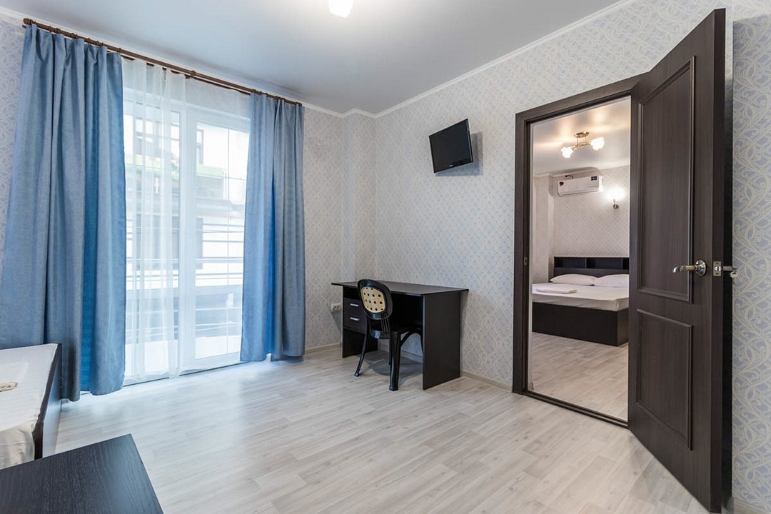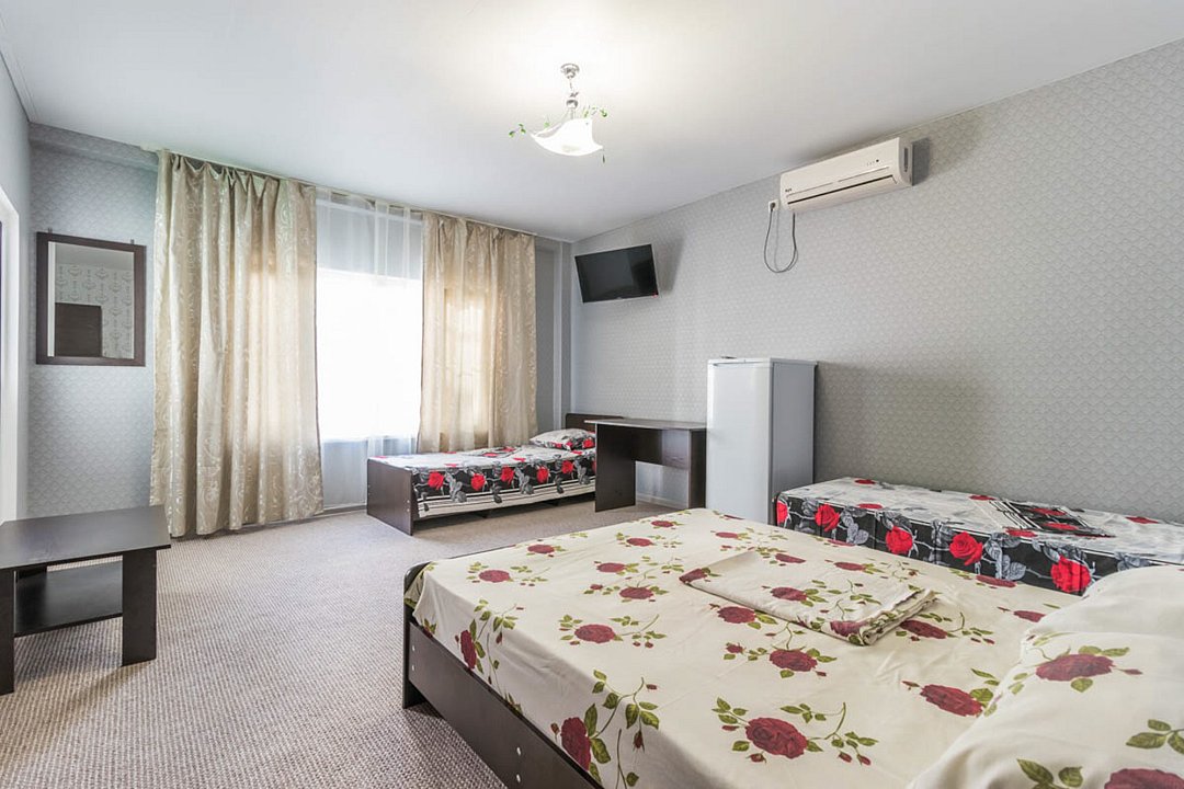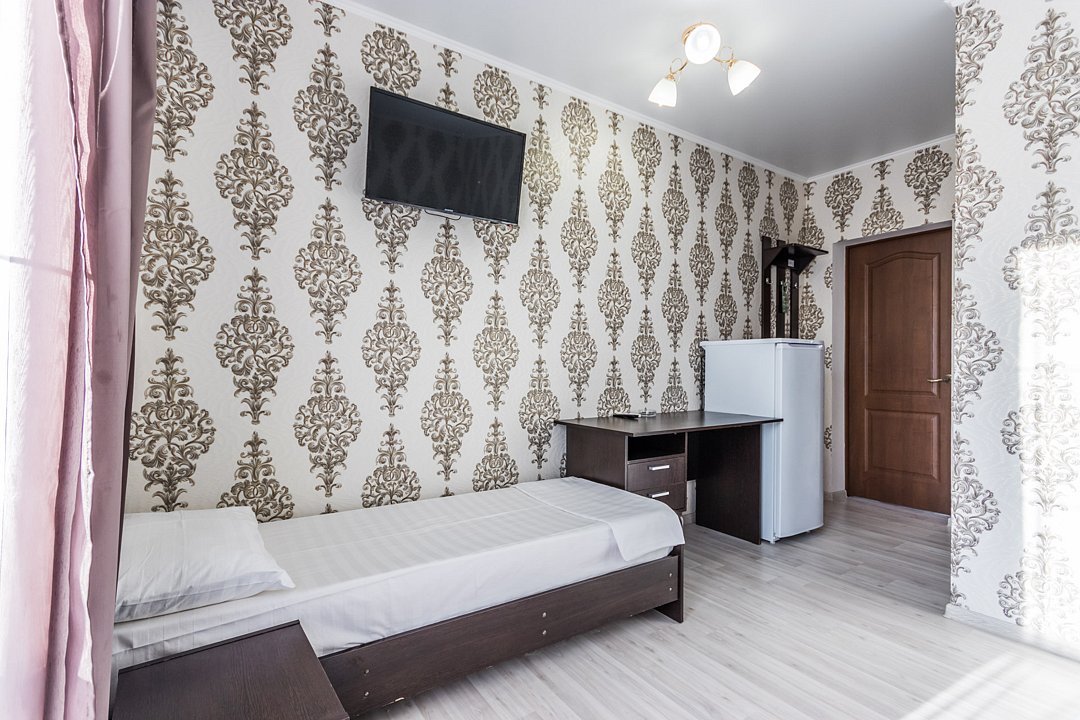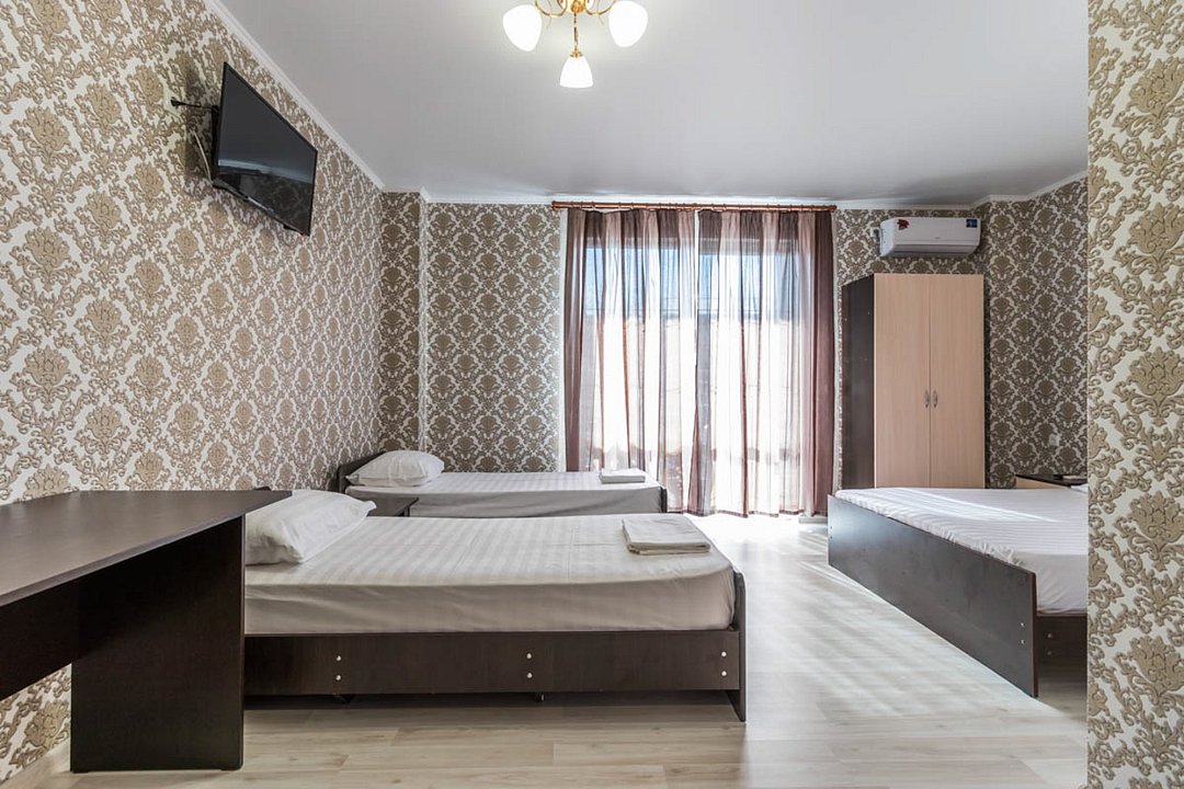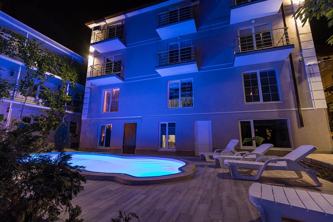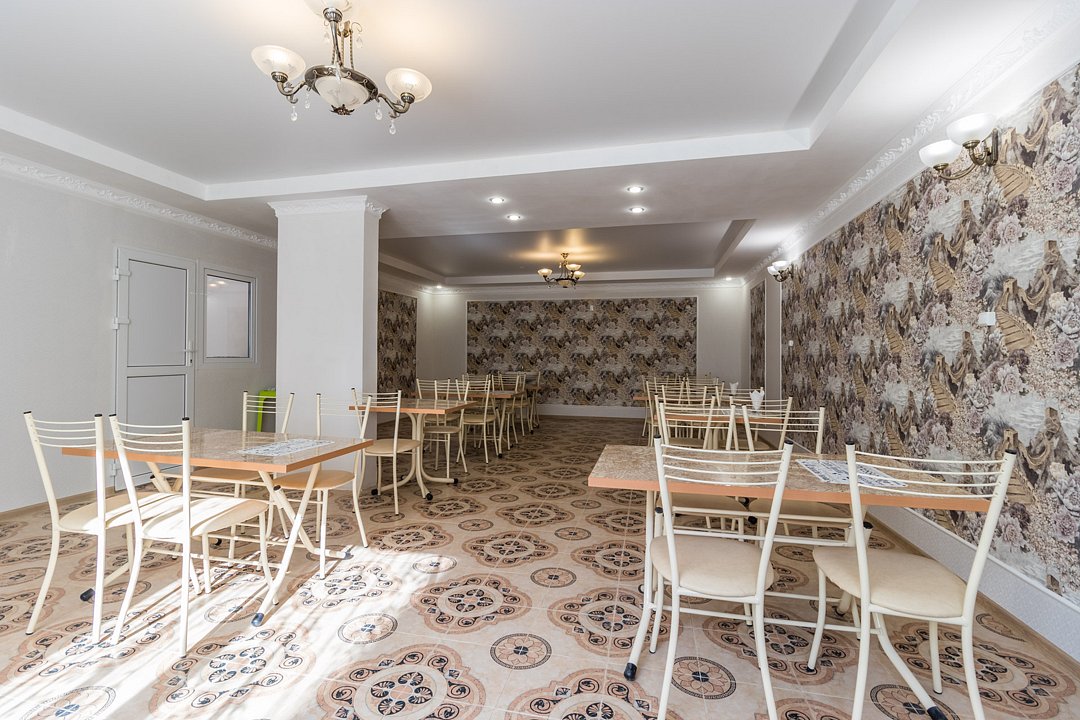 Для размещения предоставляются номера разной комфортности и вместимости. В каждом номере имеется новая удобная мебель, кондиционер, телевизор и холодильник. Для удобства работает интернет Wi-Fi. На территории предусмотрена мангальная зона и подогреваемый бассейн, парковка и столовая.