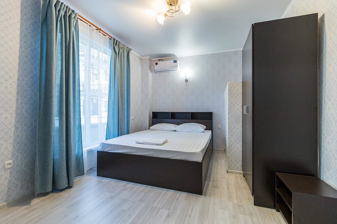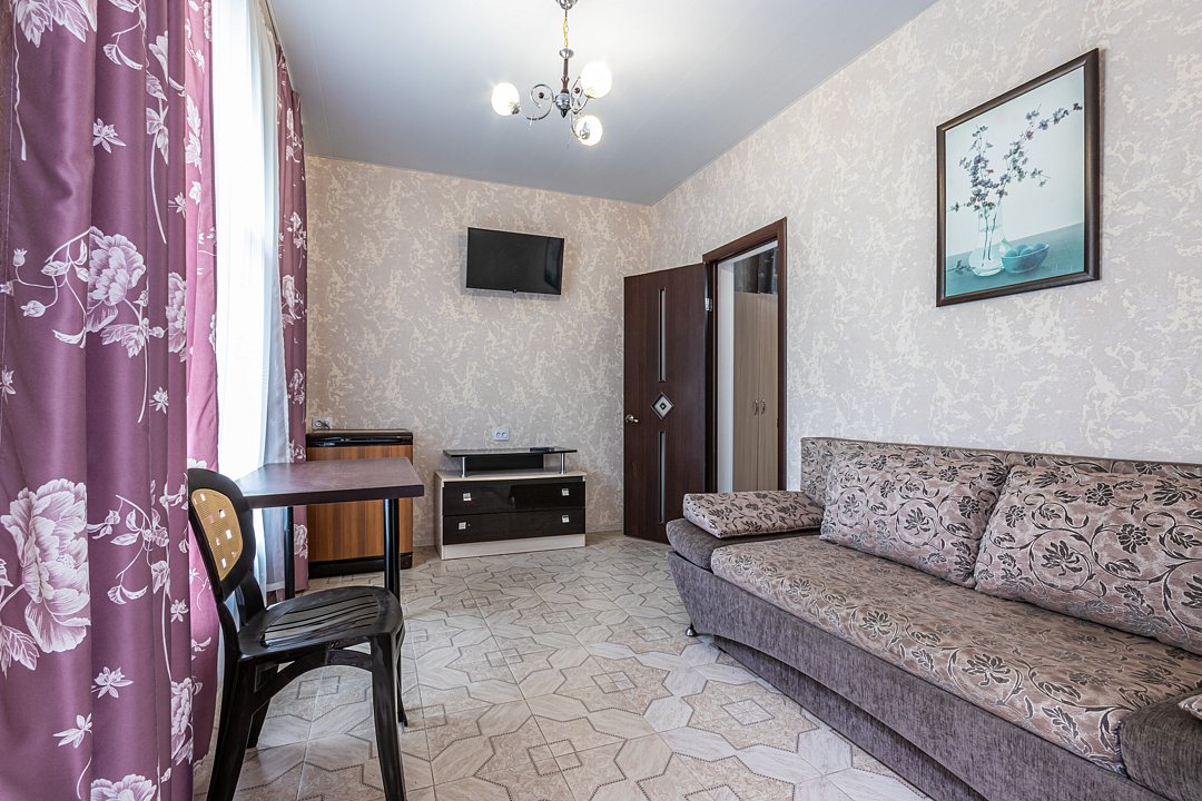 основные места:двуспальная кровать, двуспальный диван, кресло- кровать, тв, х, к, с/у, душ