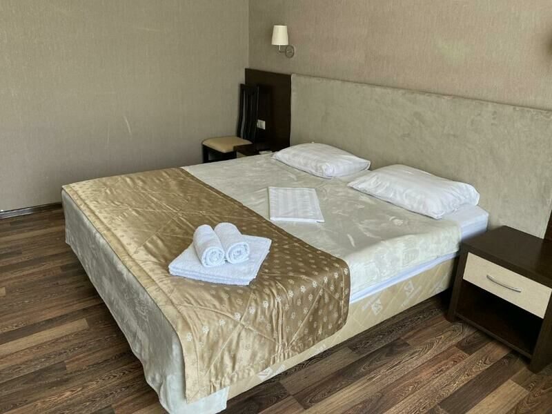 Комфортный и светлый номер с удобной двухспальной кроватью, мебель — стол, стул и вместительный шкаф, а также телевизор, холодильник, кондиционер. В вашем распоряжении собственный санузел с душем и полным набором косметических принадлежностейУслуги и удобства