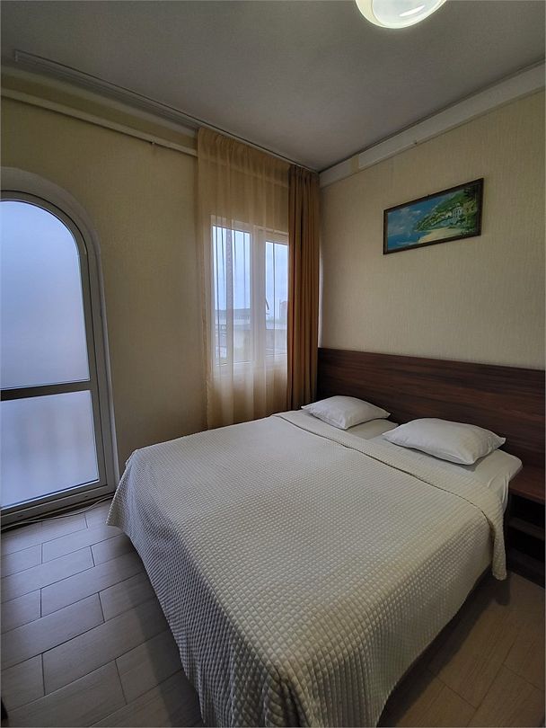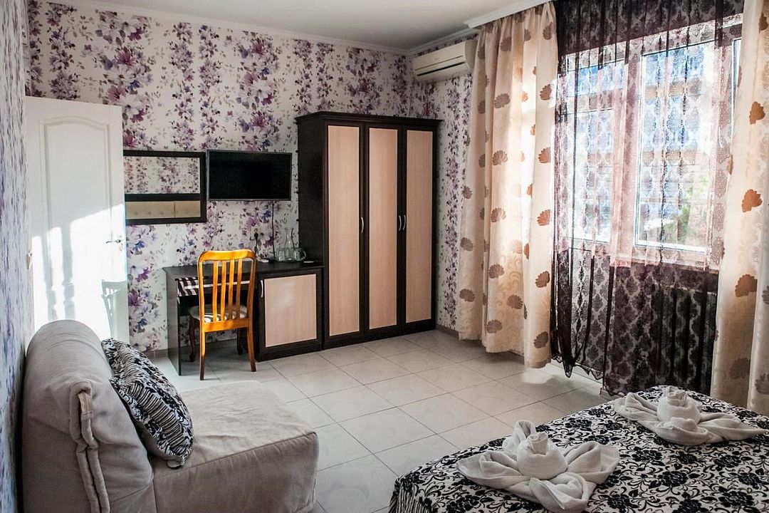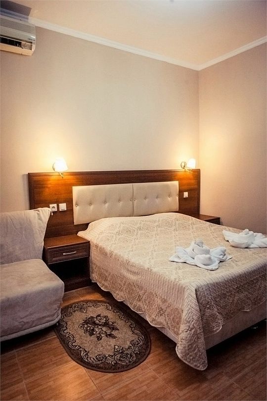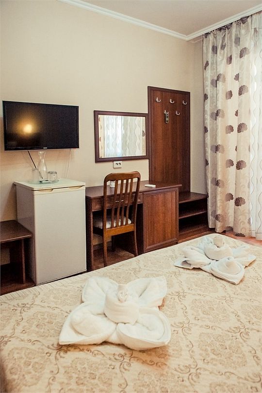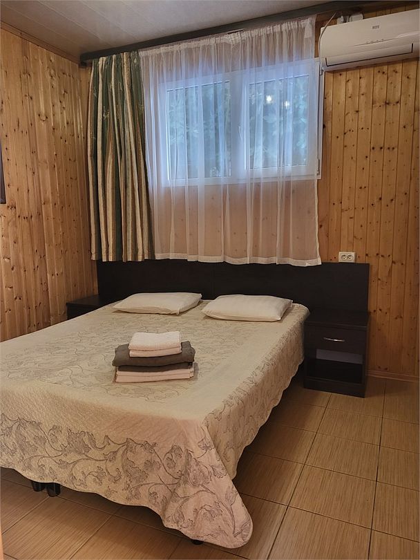 Экономичный вариант размещения для одного или двух человек. Окна в коттедже меньше стандартных по размеру. Оснащение номера: -душ -туалет -кровати-трансформеры -ТВ с плоским экраном -холодильник -прикроватные тумбочки -шкаф для одежды -банные, лицевые и для ног полотенца -косметические принадлежности (гель, шампунь, мыло) -графин, кружки Номера без стационарного отопления, в зимний сезон предоставляется электрические батареи, также работает сплит-система на тепло.Услуги и удобства